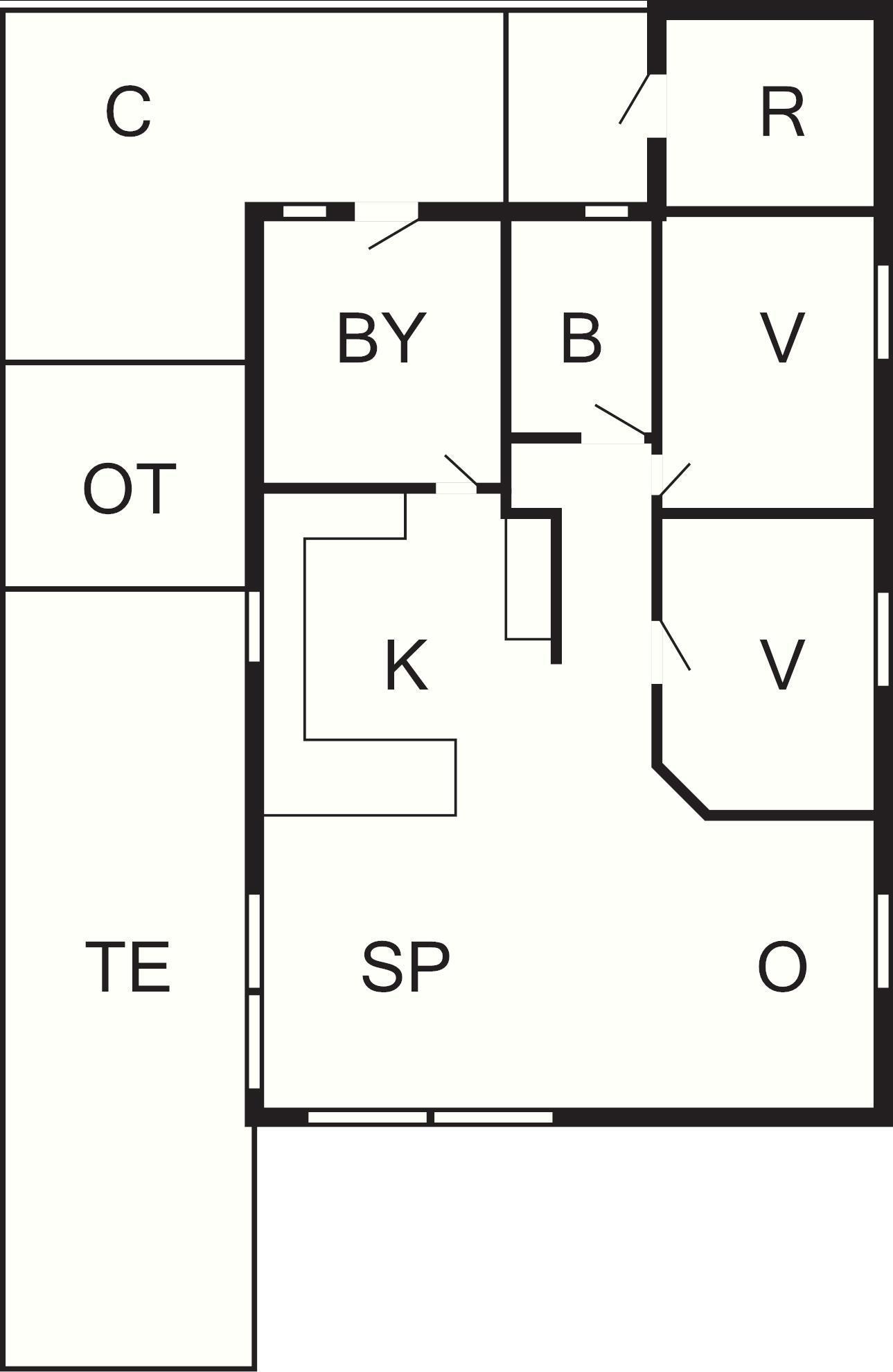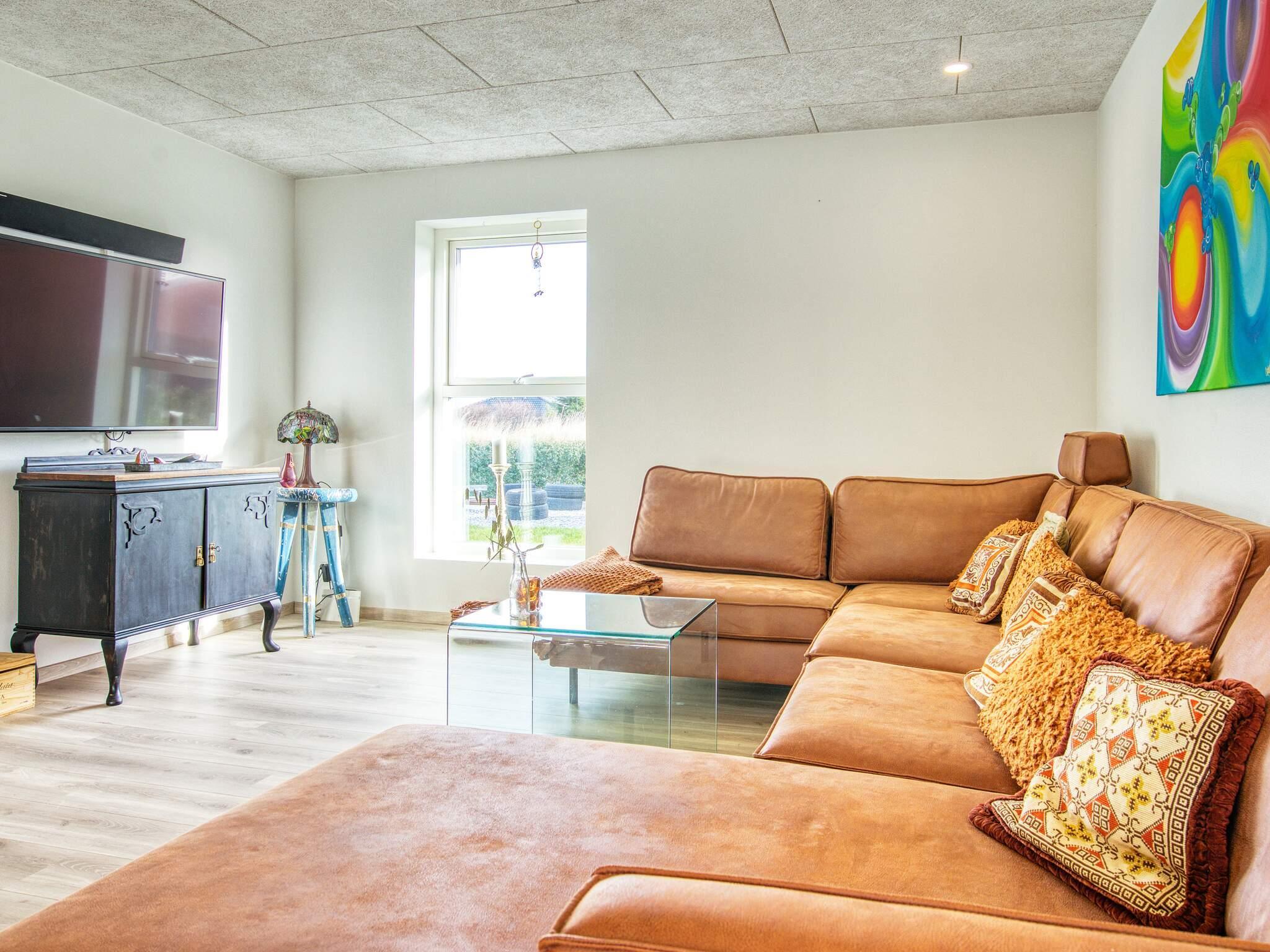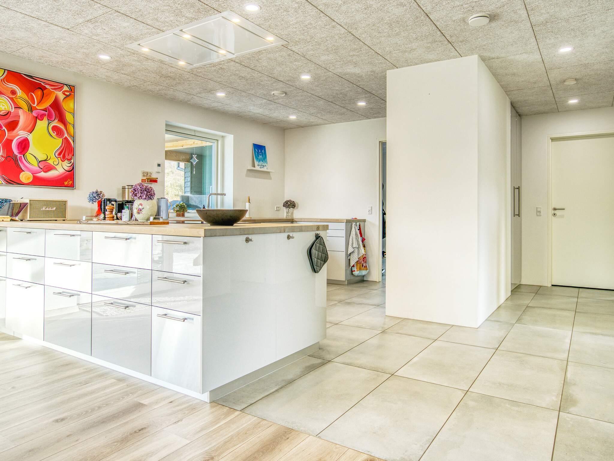 Den øvrige del af opholdsrummet har et dejligt lysindfald fra store vinduespartier og i den anden ende af opholdsrummet er der indrettet hyggelig sofaafdeling med plads til afslapning. Her er god plads til madlavningen i det veludstyrede køkken og mulighed for middag med hele flokken ved det lange spisebord, hvor I kan komme helt ned i gear, spille et spil eller andet. Der er også en højstol. Lige uden for døren er der stor, rummelig træterrasse med en delvis overdækning.