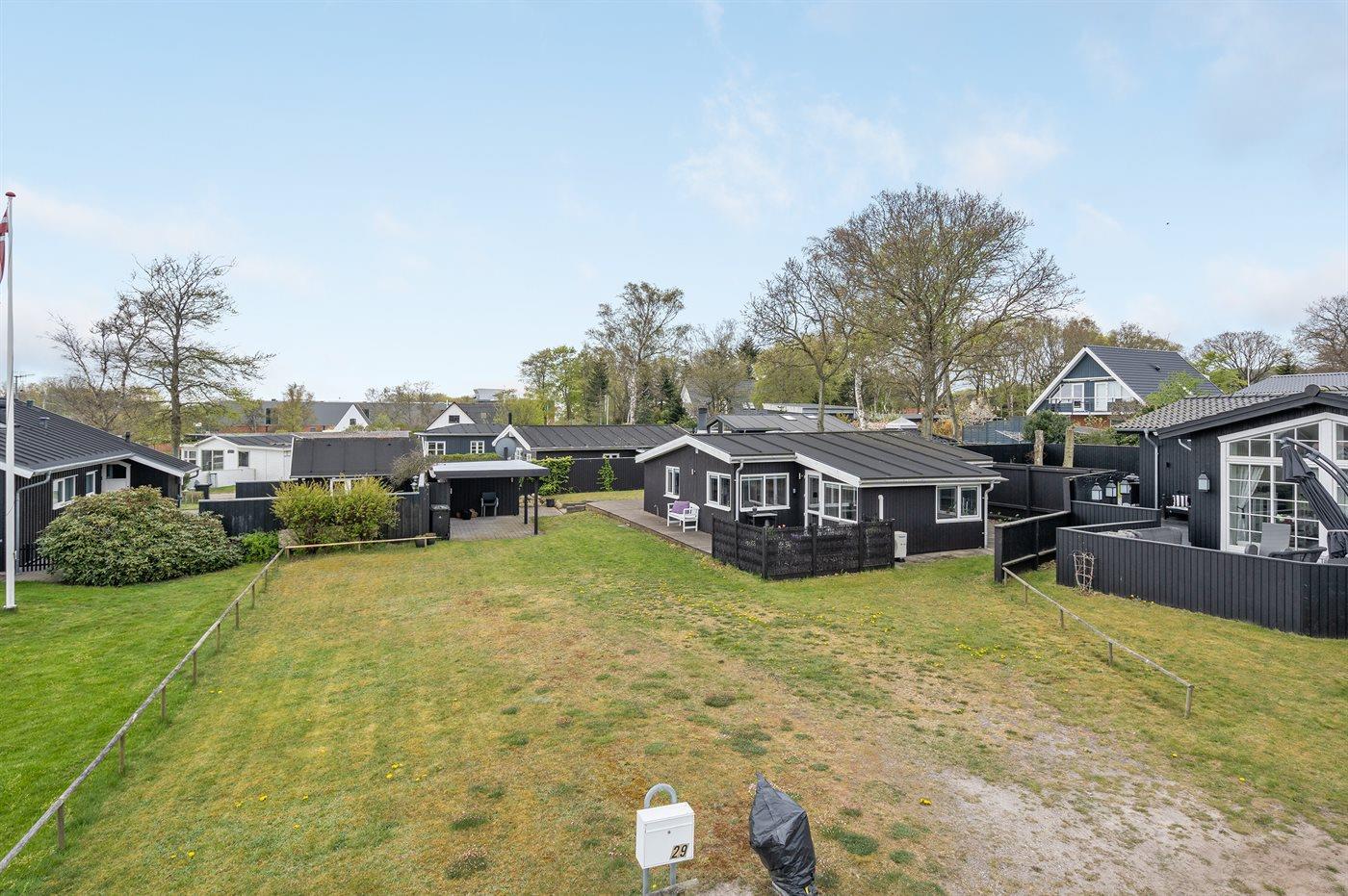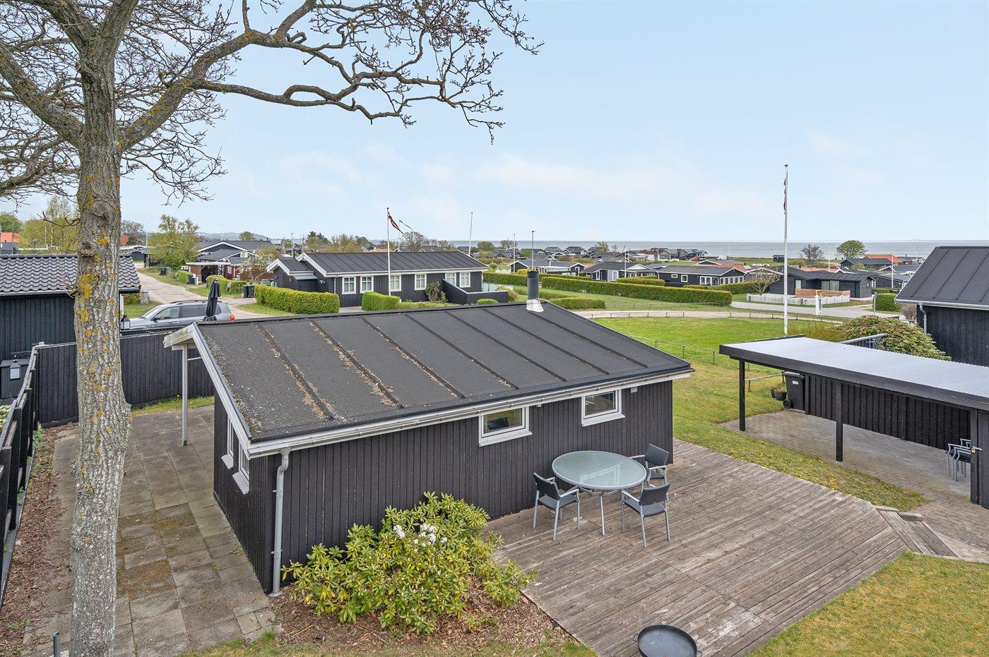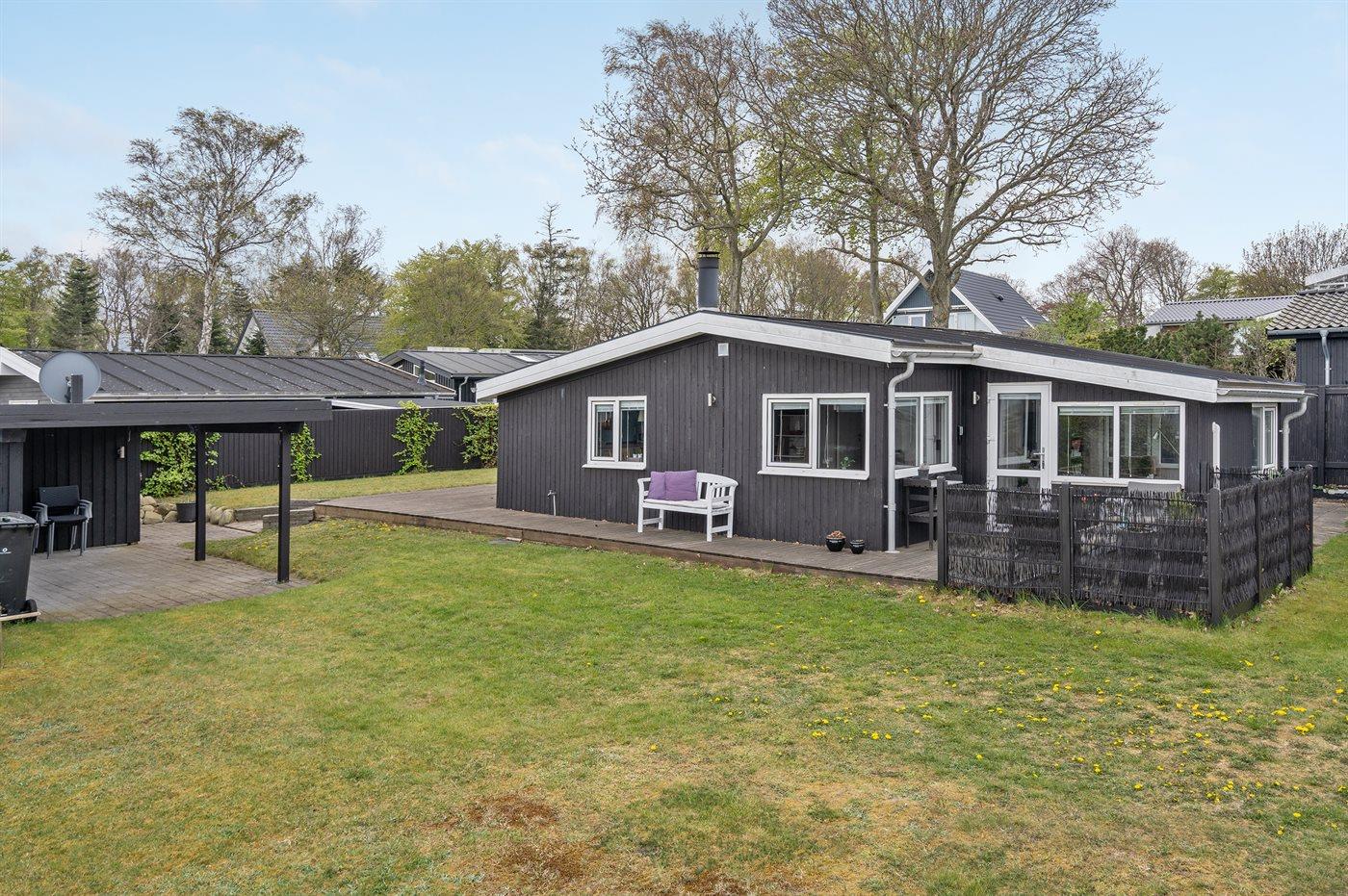 Ferieboligen er beliggende på en 183 m² stor naturgrund. Der er 250 m til havet. Nærmeste forretning er beliggende i en afstand af 1100 m. Til ferieboligen hører åbent og overdækket terrasseareal. Der ligger en legeplads i en afstand af 100 m. Der er carport til rådighed. Parkering ved ferieboligen.