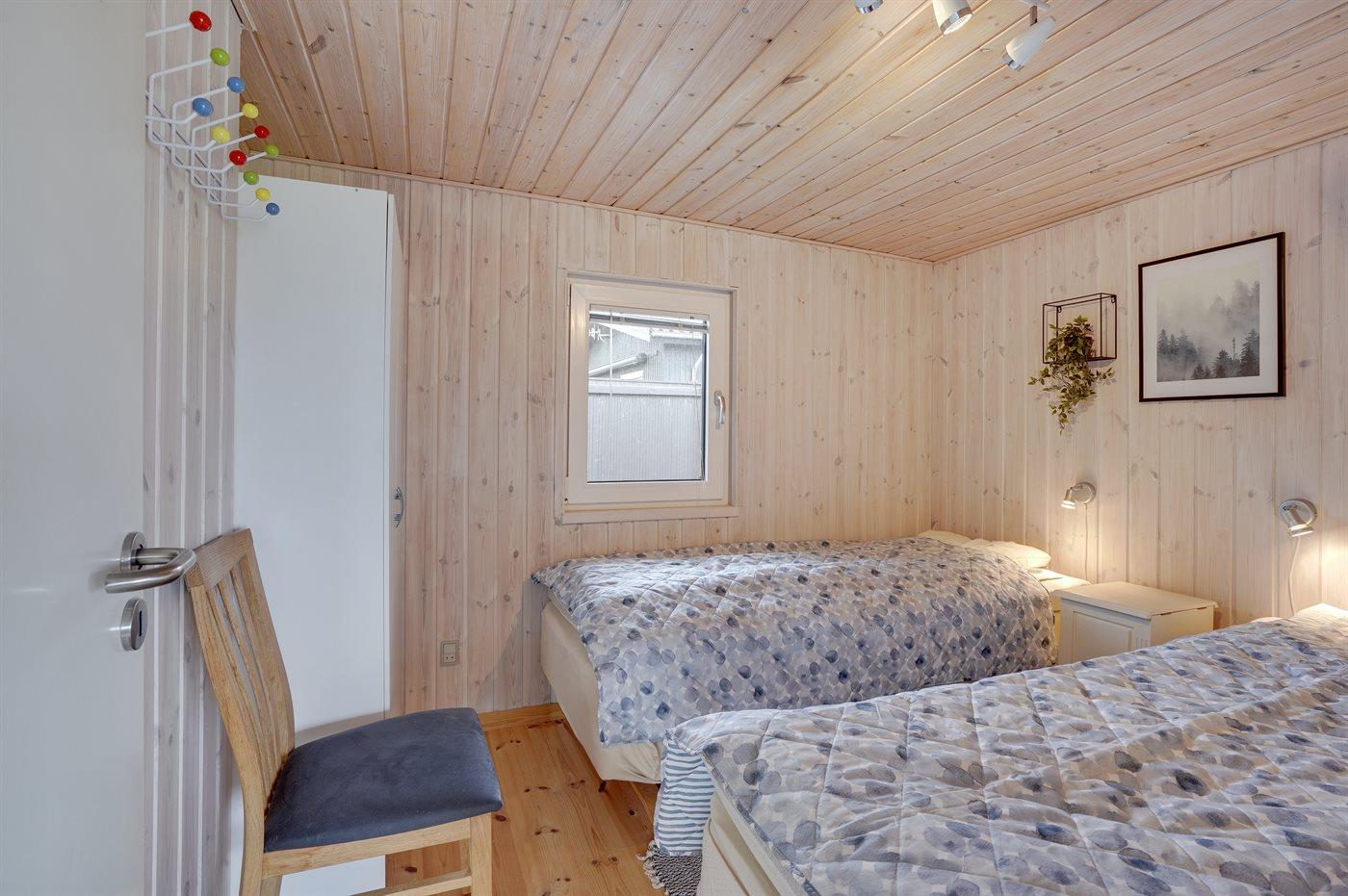 Der er i alt 2 soveværelser. Sovepladserne fordeler sig på: 2 sovepladser i dobbeltseng. 2 sovepladser i enkeltsenge.