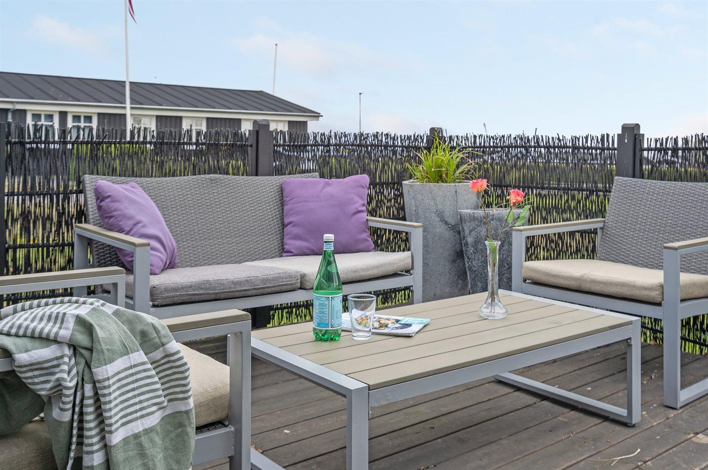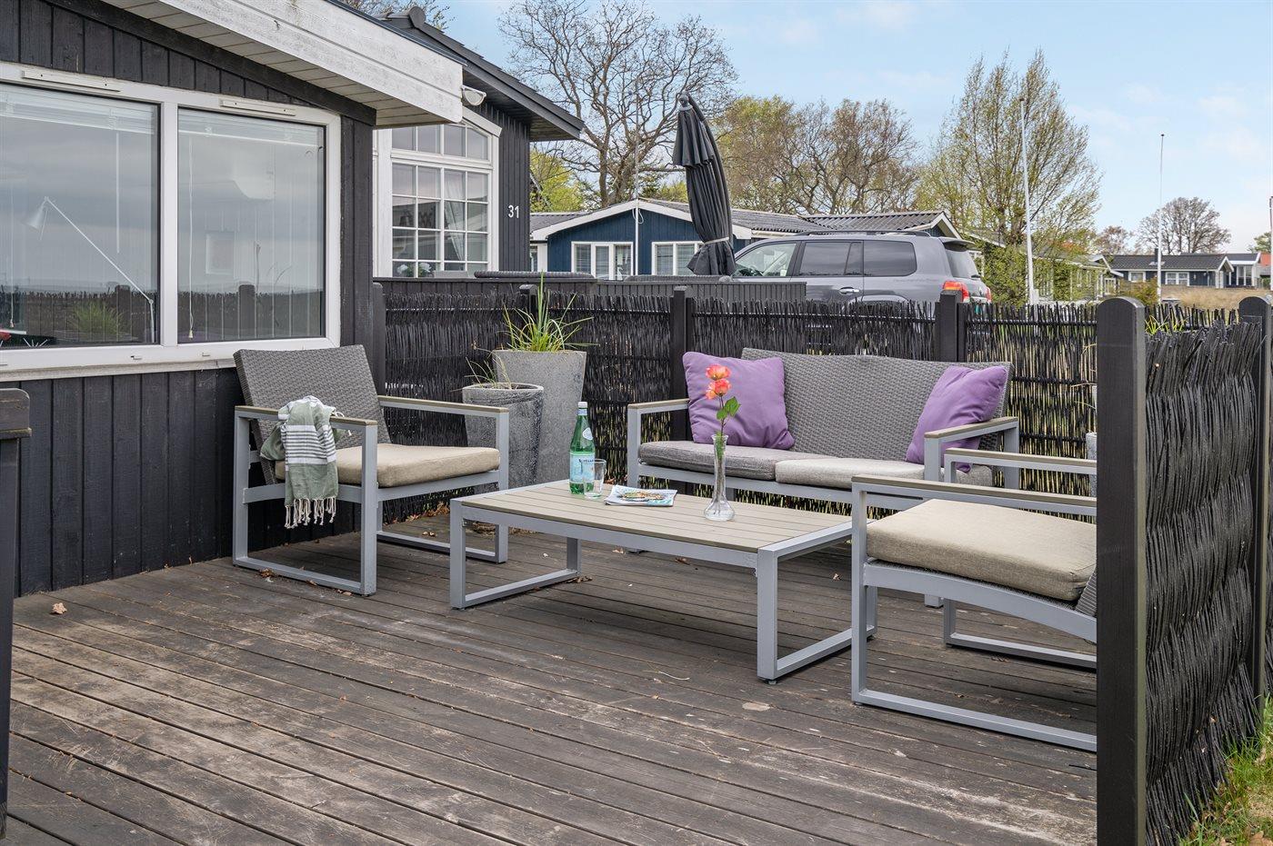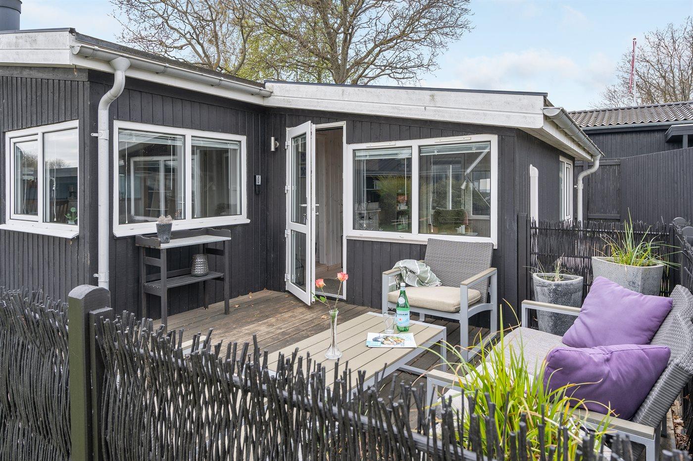 Hyggeligt sommerhus i Sæby med havudsigt, terrasse og naturgrund tæt på byens centrum og havnemiljø.