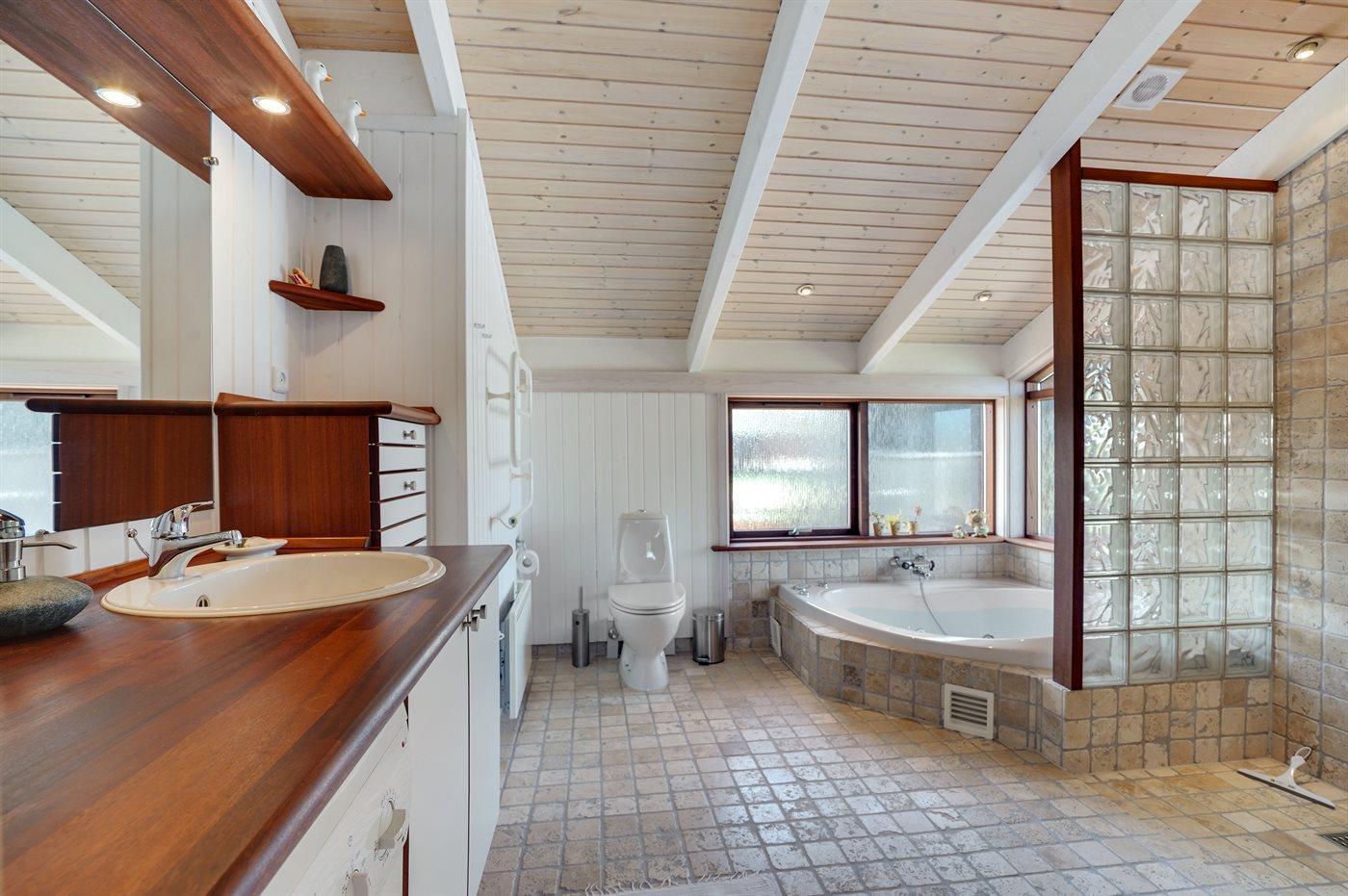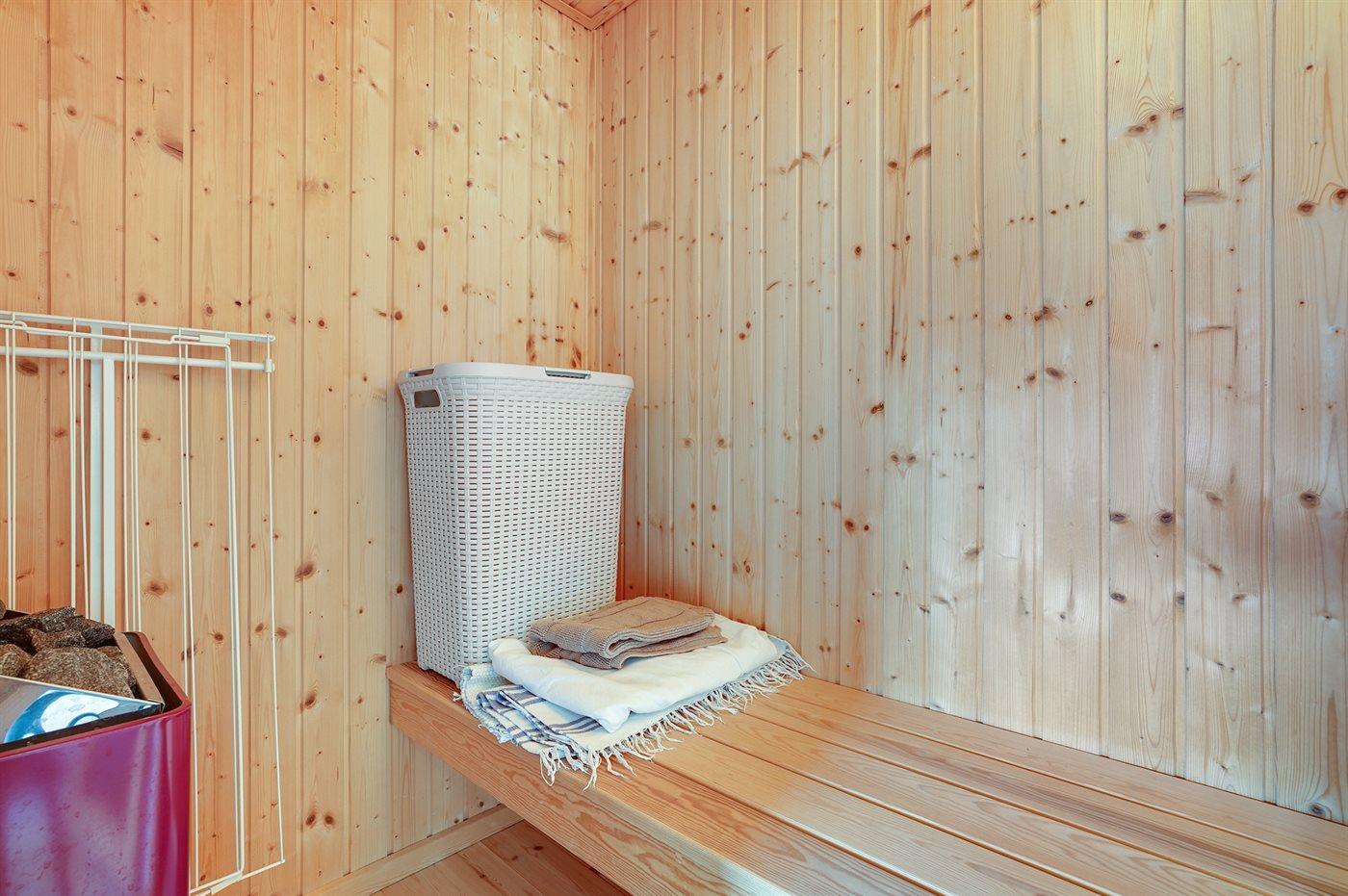 Der er 1 badeværelse med bruseniche og 1 toilet.. Der er gulvvarme på 1 badeværelse. I saunaen er der mulighed for afslapning.