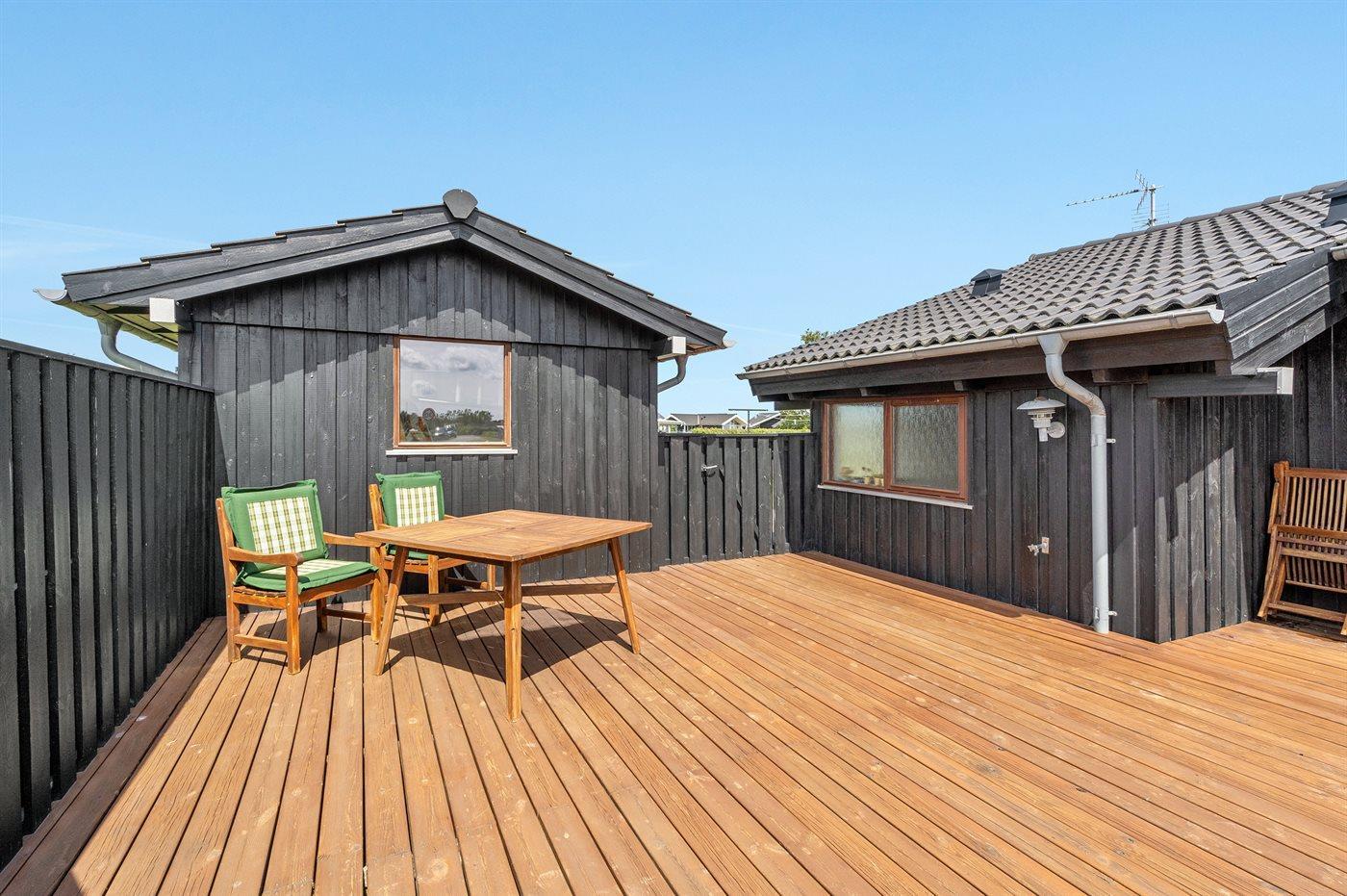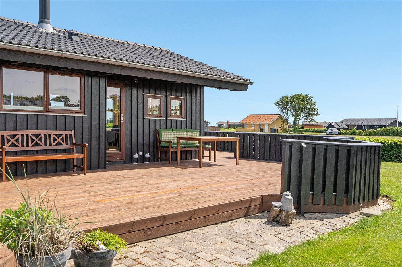 Ferieboligen er beliggende på en 800 m² stor havegrund. Der er 100 m til havet. Nærmeste forretning er beliggende i en afstand af 1300 m. Der er en golfbane i en afstand af 3000 m. Til ferieboligen hører åbent terrasseareal. Desuden er der overdækket terrasse. Grill til rådighed. Der er carport til rådighed. Parkering ved ferieboligen.