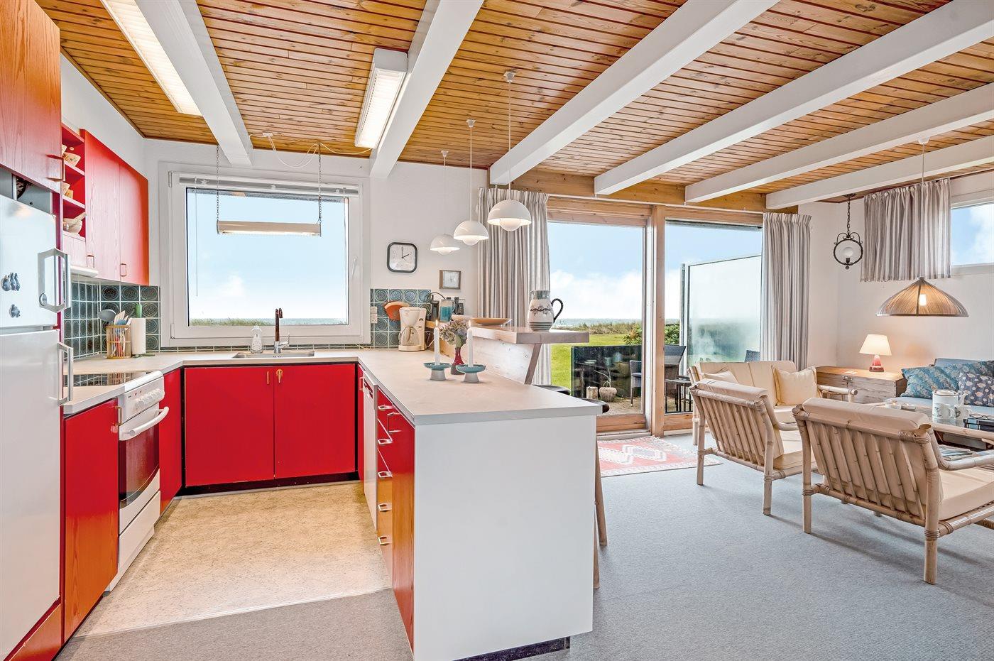 Køkkenet er udstyret med 1 køleskab. Der er 4 keramiske kogeplader, varmluftovn, mikrobølgeovn samt opvaskemaskine.