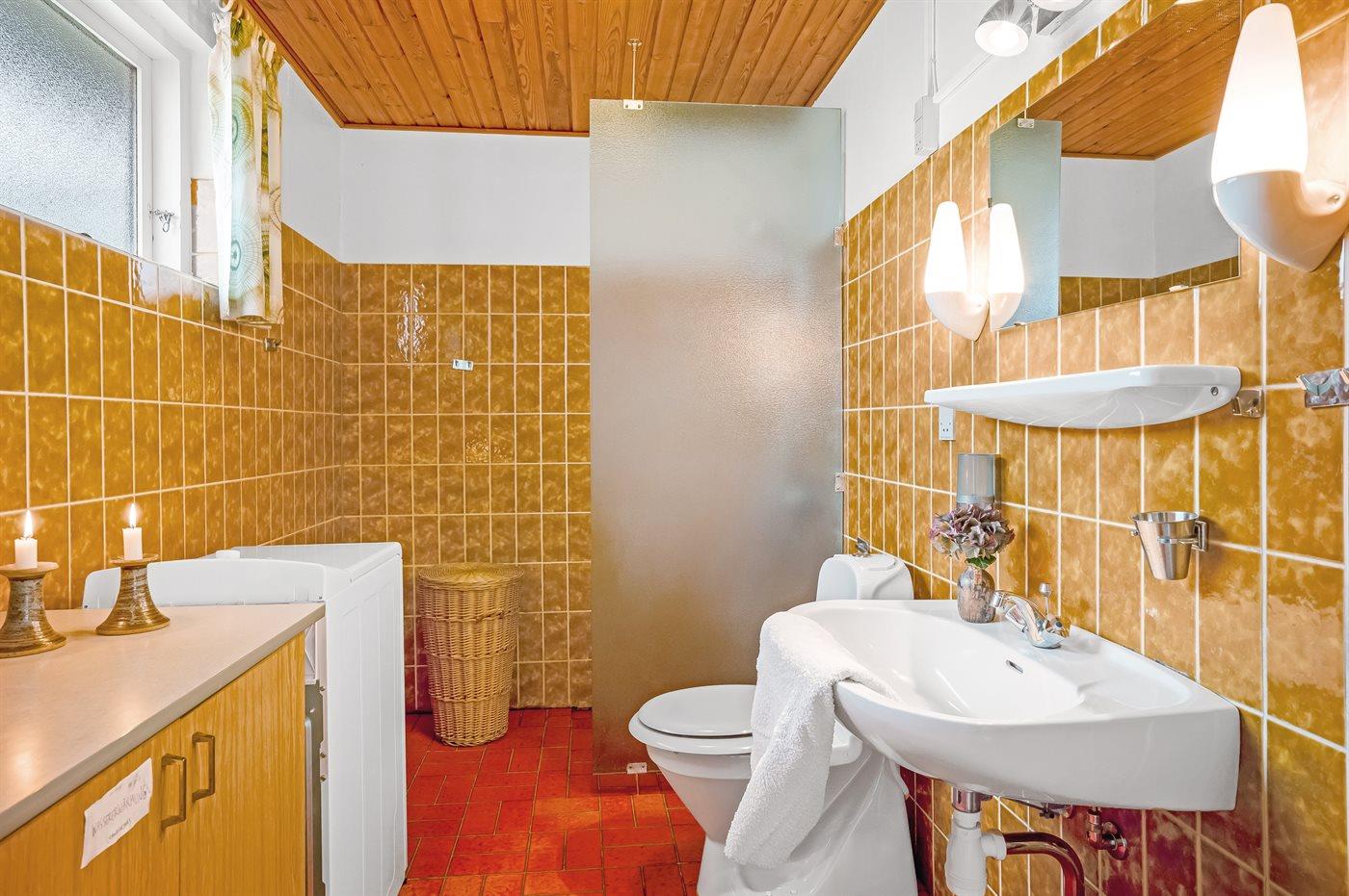 Sommerhuset har et funktionelt badeværelse med bruseniche. Den skønne udsigt, det autentiske interiør og den korte afstand til stranden gør dette hus til en ideel base for afslapning og oplevelser ved vandet.