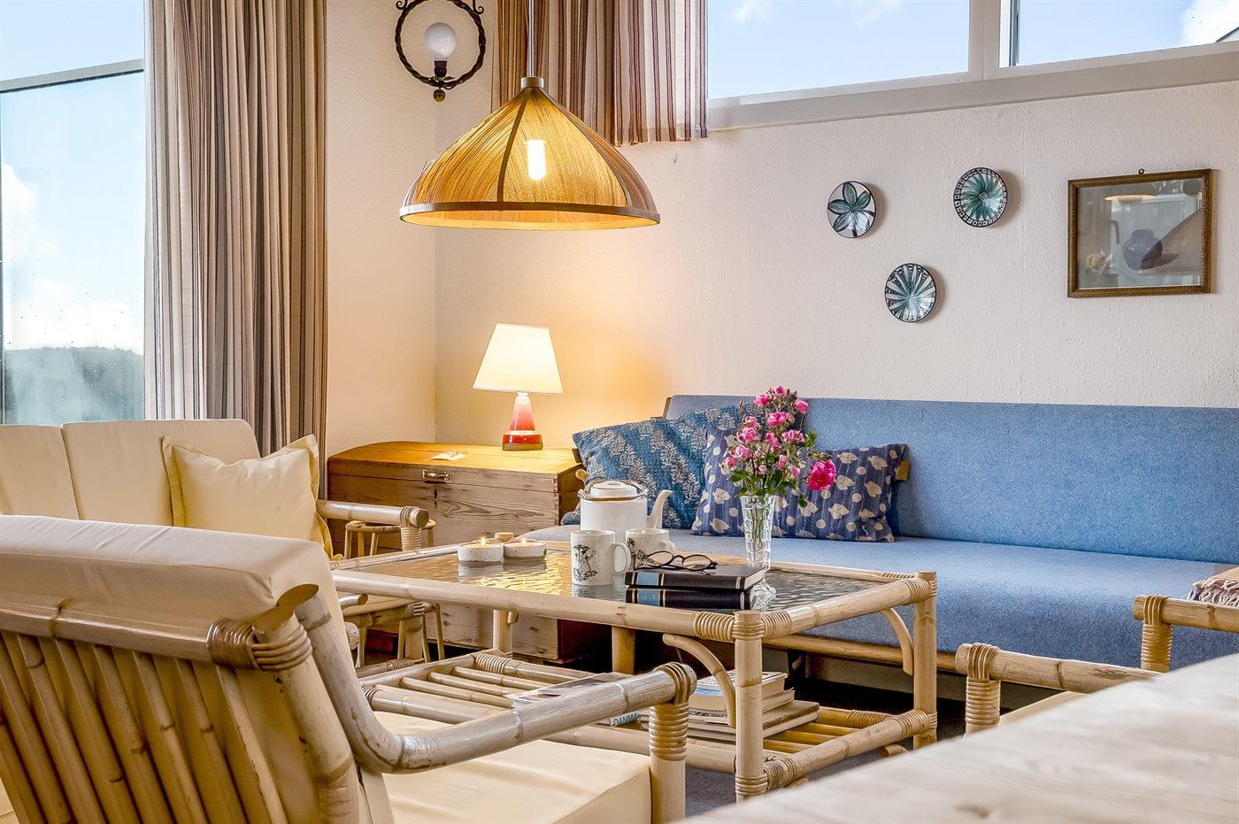 Huset er yderst vedligeholdt og indretningen fremstår i retro 70'er-stil og kan rumme 4 voksne samt en hund. Det har 2 værelser, hver med en enkeltseng, samt en rummelig stue med en dobbelt sovesofa. Perfekt til både par og små familier, der ønsker en ferie i rolige og naturskønne omgivelser.