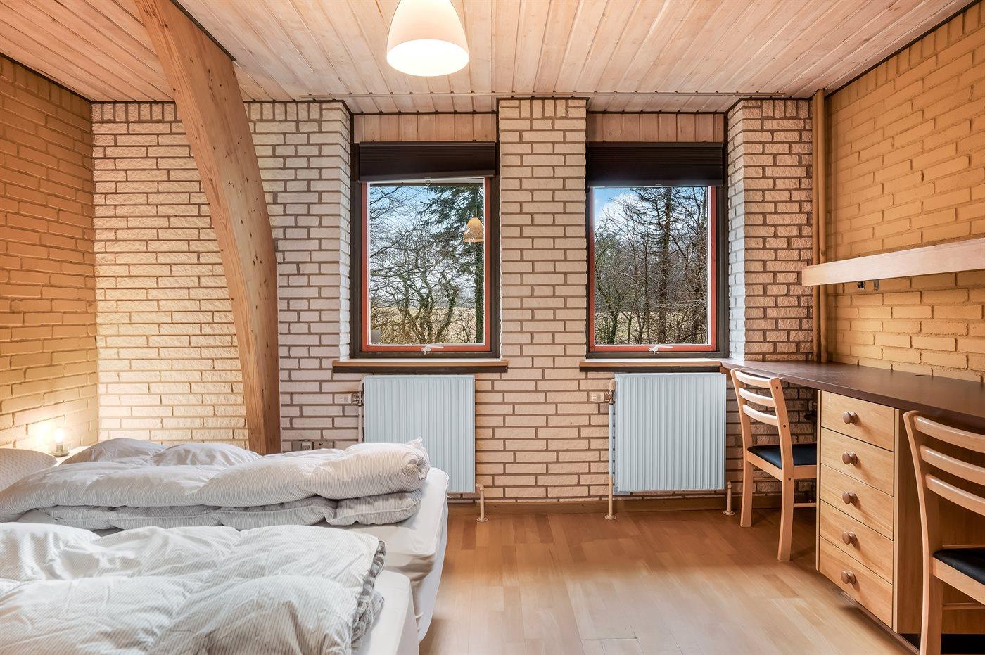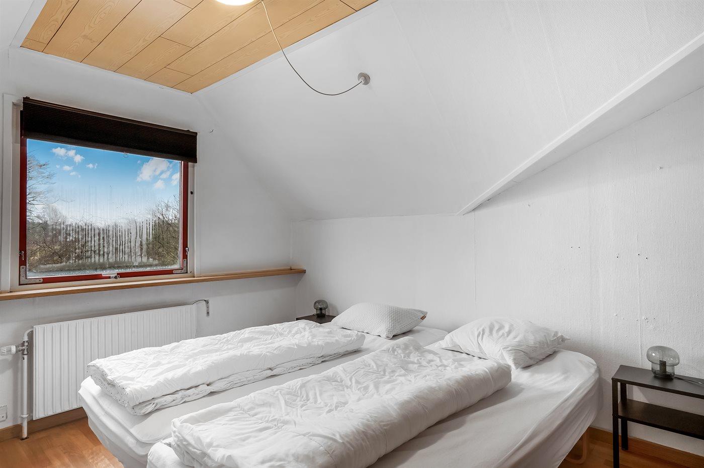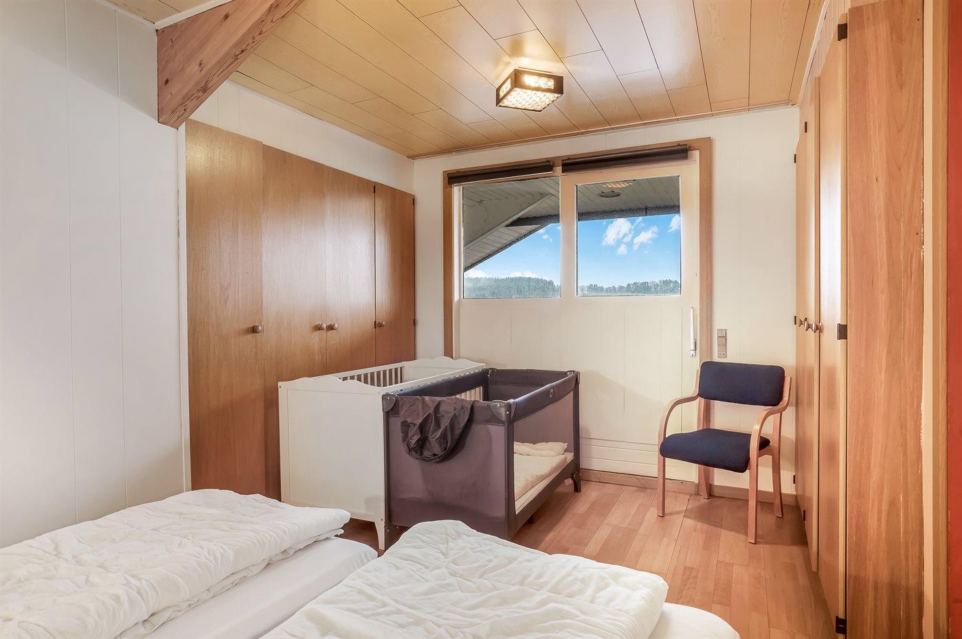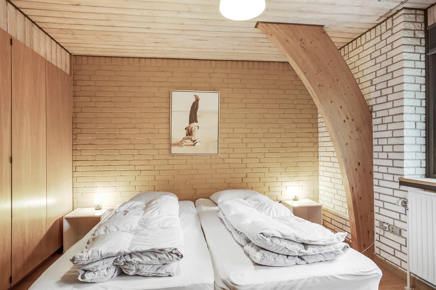 Der er i alt 8 soveværelser. Sovepladserne fordeler sig på: 2 sovepladser i dobbeltseng. 16 sovepladser i enkeltsenge. 3 sovepladser i køjesenge. Derudover er der 2 stk. barnesenge.