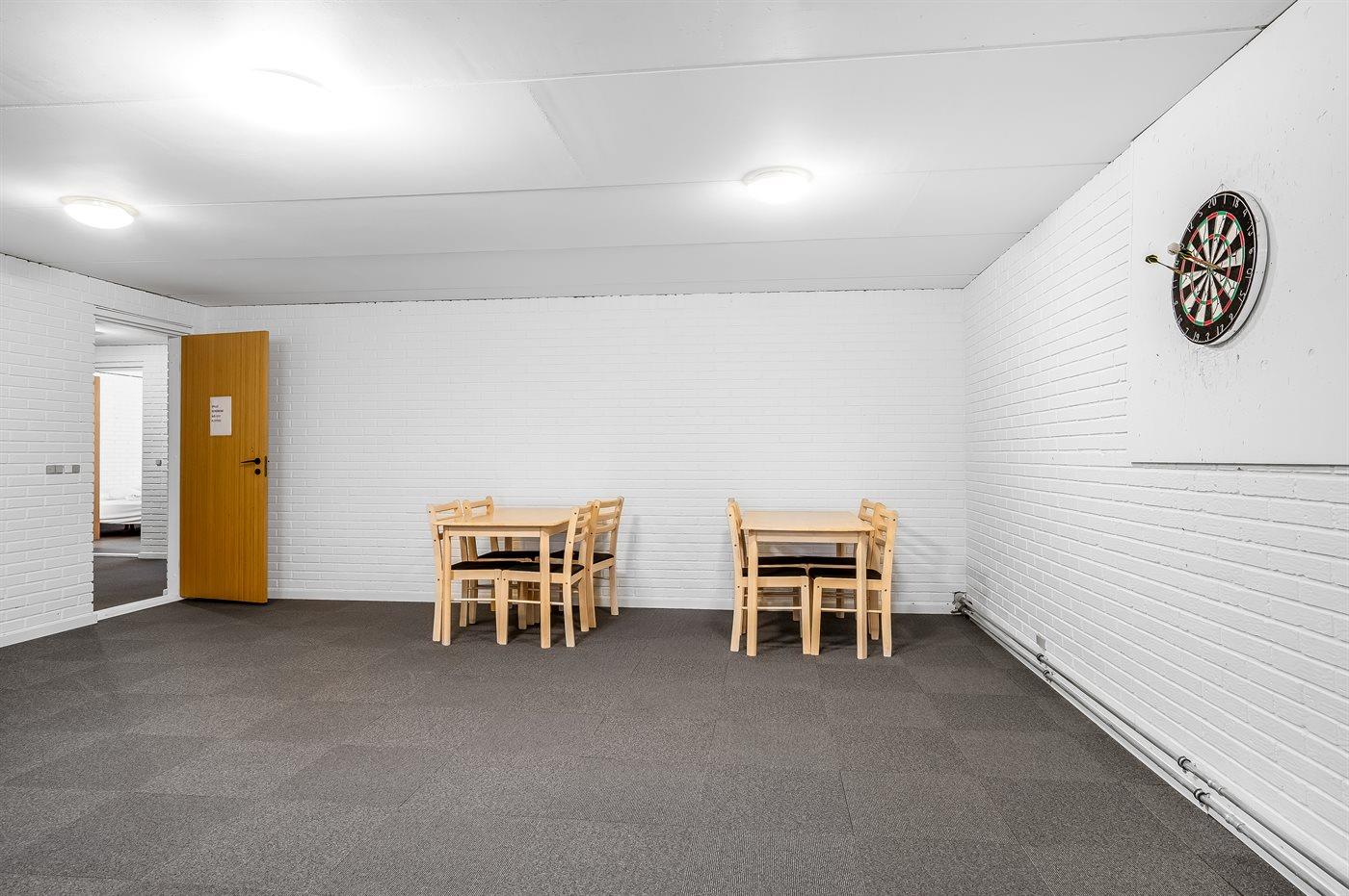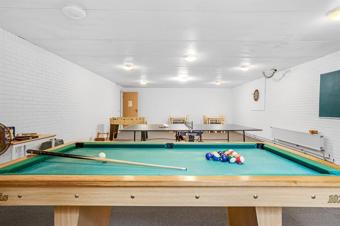I aktivitetsrummet er der følgende udstyr: Poolbord. Bordtennis. Dart.