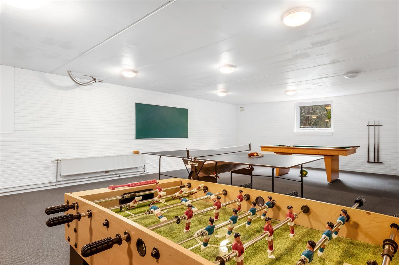 Som en af husets store attraktioner finder I en stor, indendørs swimmingpool på 24 m², der indbyder til sjov og leg for både børn og voksne. Derudover findes der et aktivitetsrum med poolbord, dart og bordtennis, så der er rig mulighed for underholdning, uanset vejret.