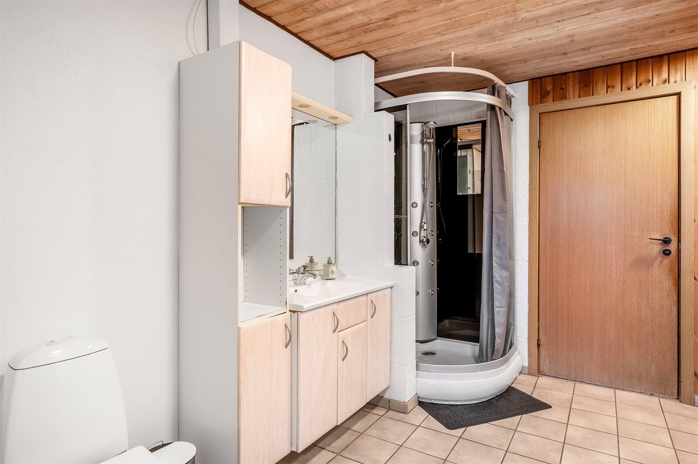 Der er 3 badeværelser med bruseniche og 3 toiletter. Der er gulvvarme på 2 badeværelser. I saunaen er der mulighed for afslapning.