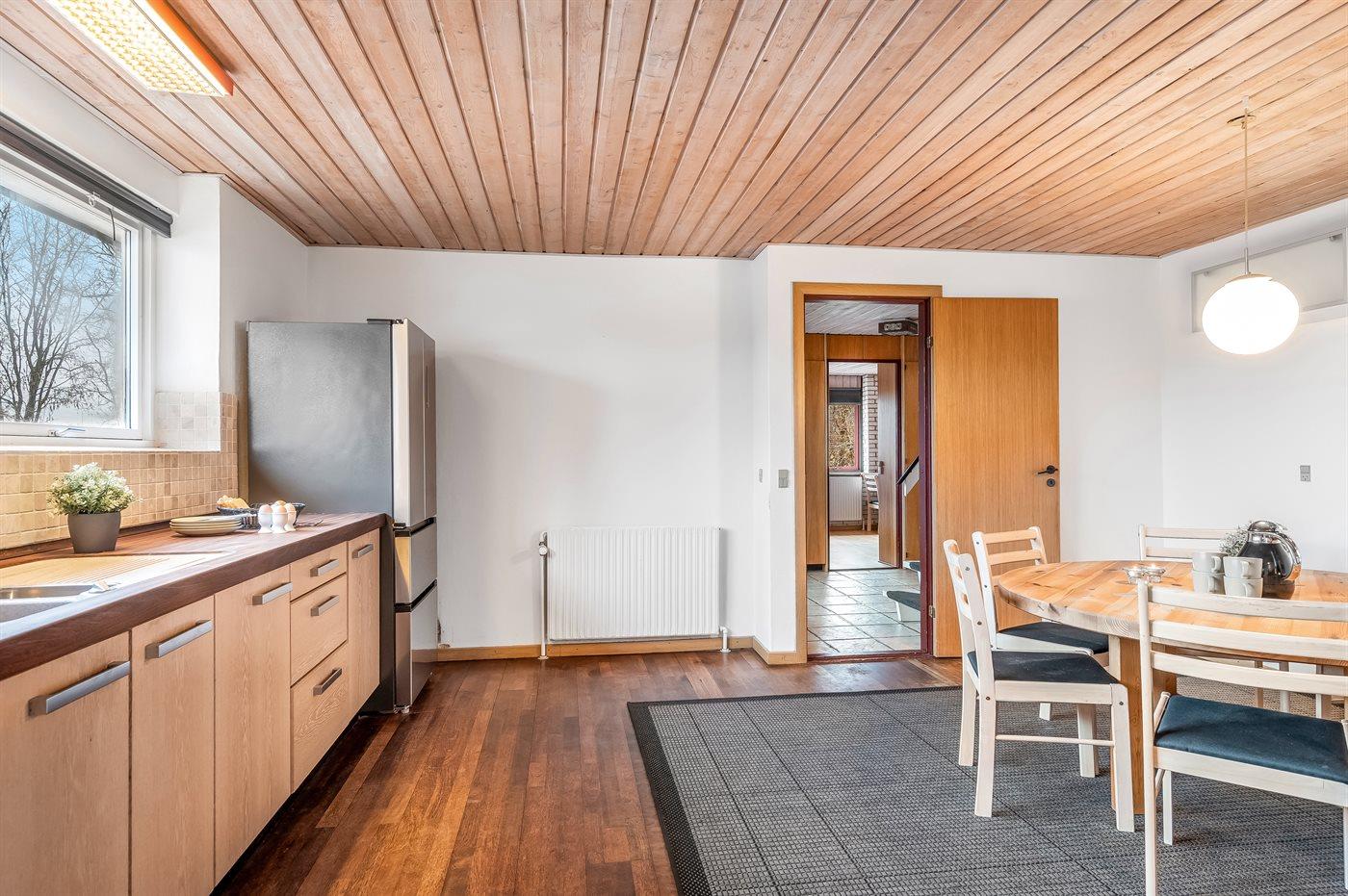 Køkkenet er udstyret med 1 køleskab. Der er 8 keramiske kogeplader, 2 varmluftovne, mikrobølgeovn samt opvaskemaskine.