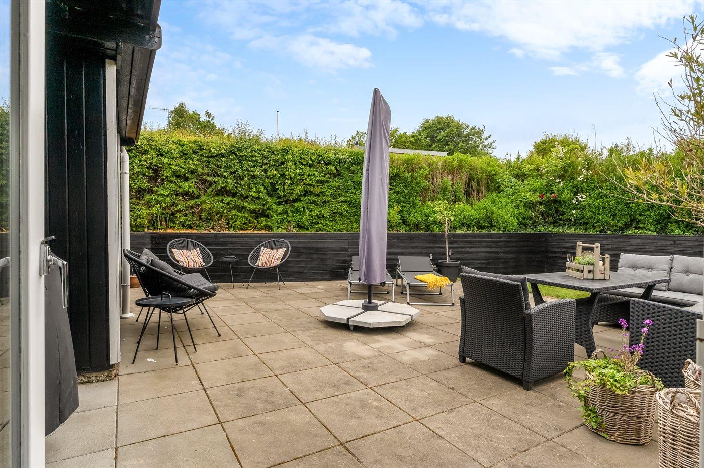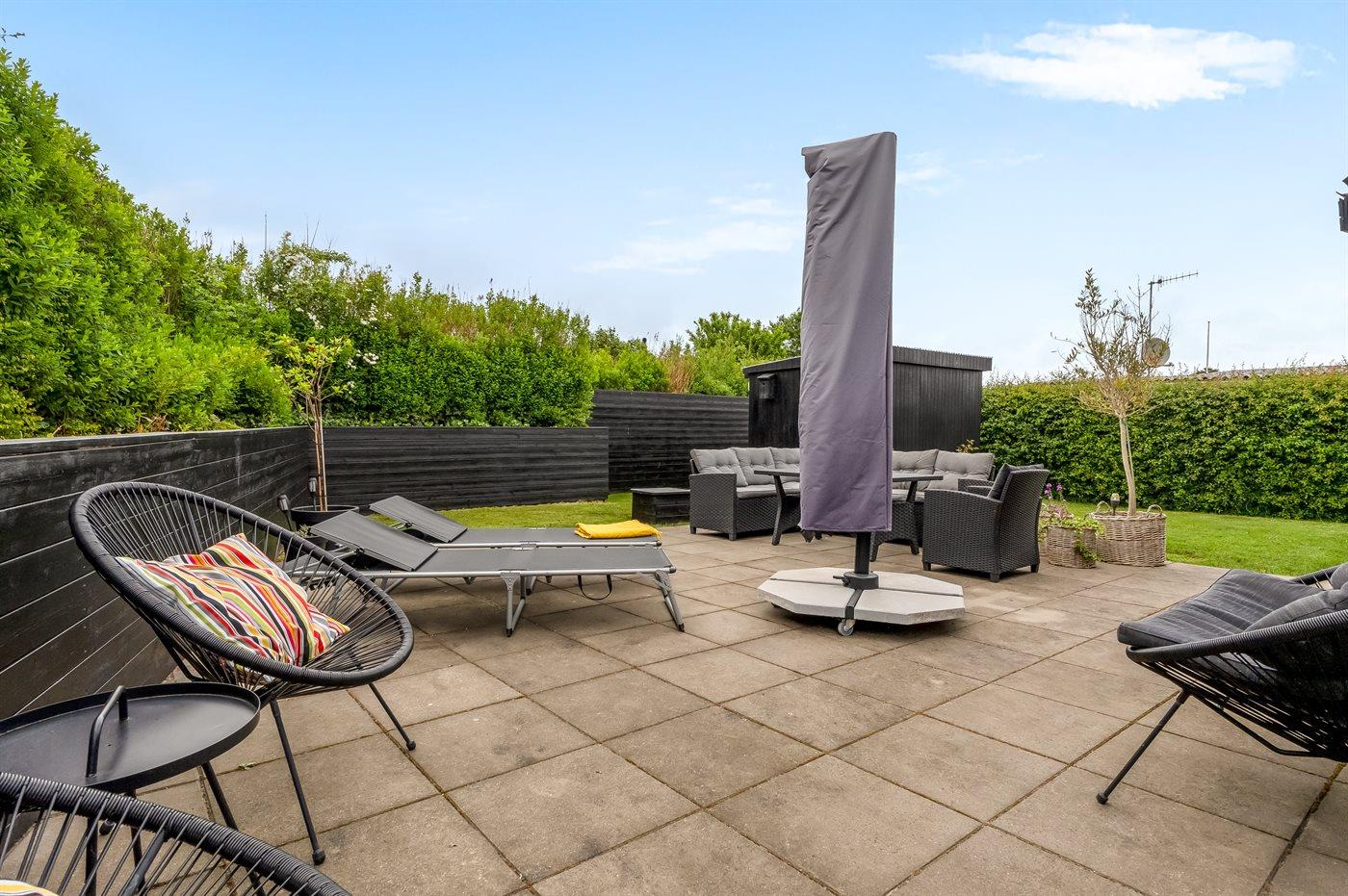 Hyggeligt sommerhus i Sæby med privat have tæt på strand og byliv.