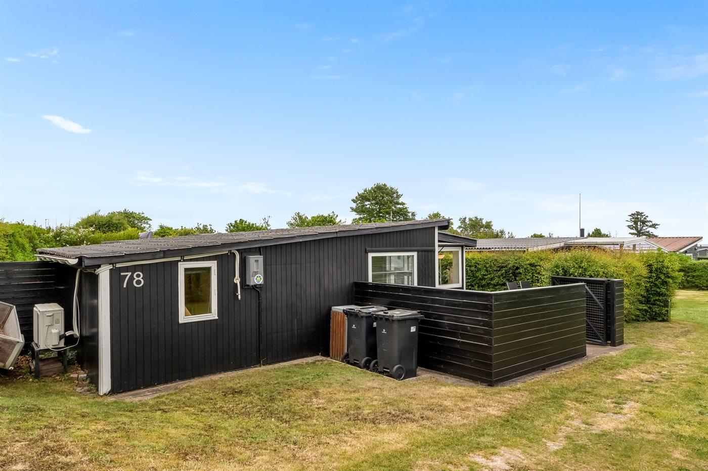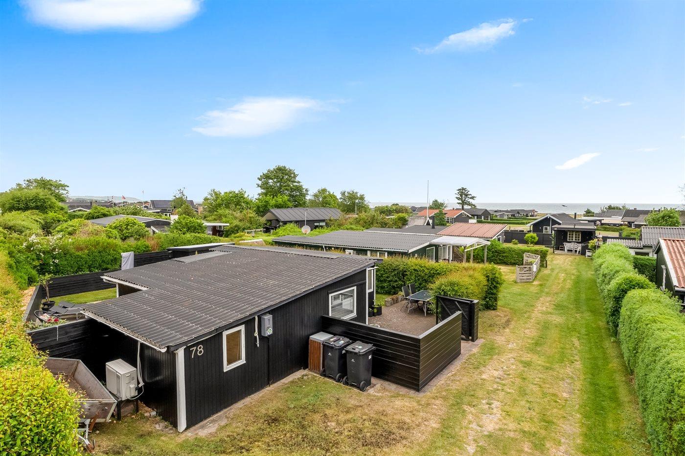 Ferieboligen er beliggende på en 500 m² stor naturgrund. Grunden er indhegnet. Der er 230 m til havet. Nærmeste forretning er beliggende i en afstand af 1200 m. Til ferieboligen hører åbent terrasseareal. Bålsted. Grill til rådighed. Parkering ved ferieboligen.