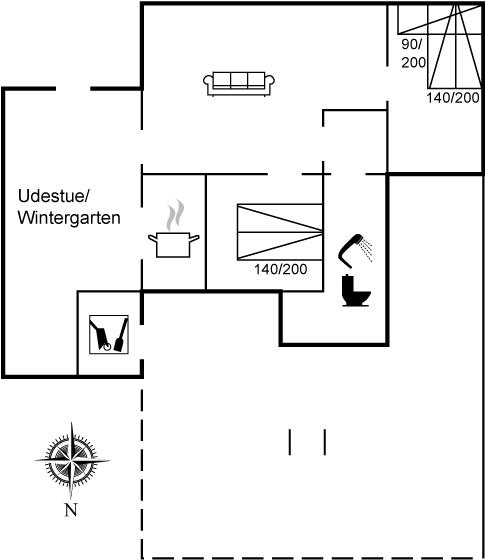 Der er i alt 2 soveværelser. Sovepladserne fordeler sig på: 4 sovepladser i dobbeltsenge.1 soveplads i køjeseng.
