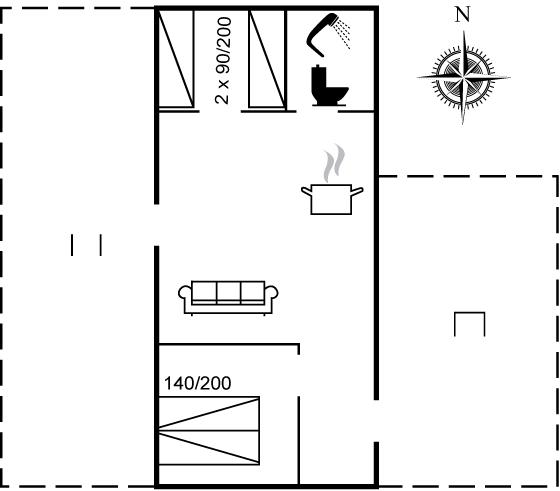 Der er i alt 2 soveværelser. Sovepladserne fordeler sig på: 2 sovepladser i dobbeltseng. 2 sovepladser i enkeltsenge.