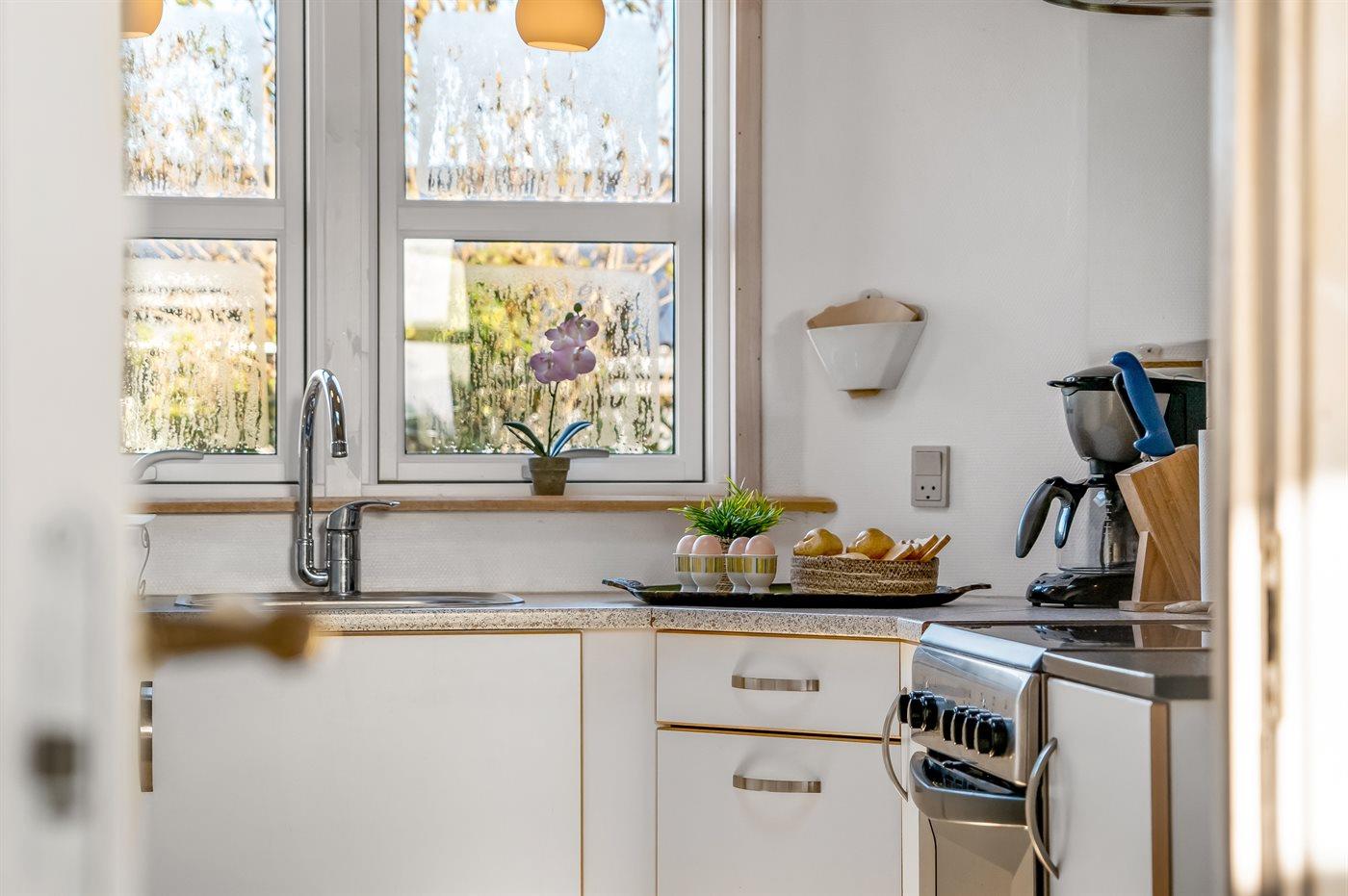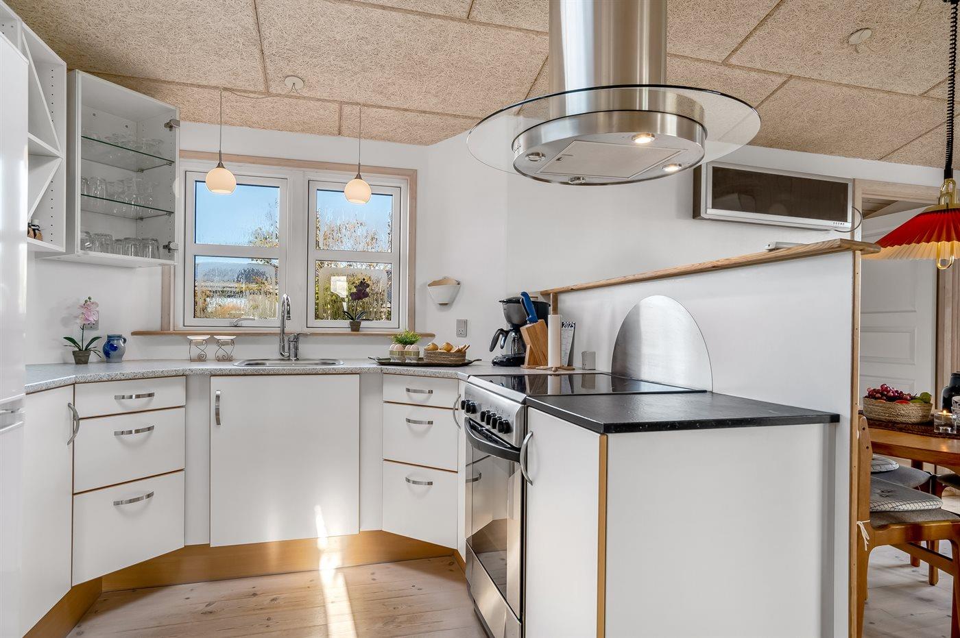 Køkkenet er udstyret med 1 køleskab. Der er 4 keramiske kogeplader, varmluftovn.