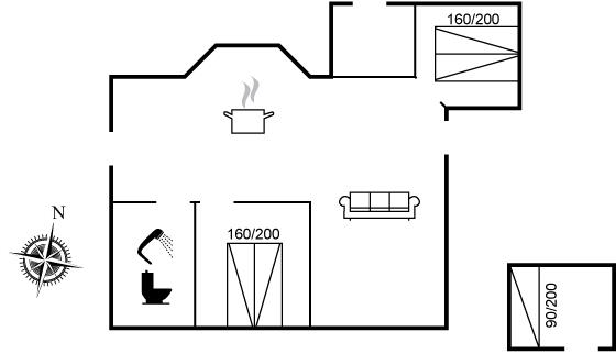 Der er i alt 3 soveværelser. Sovepladserne fordeler sig på: 4 sovepladser i dobbeltsenge. 1 soveplads i enkeltseng. 1 af disse sovepladser befinder sig i et anneks.