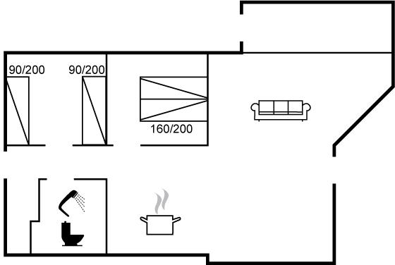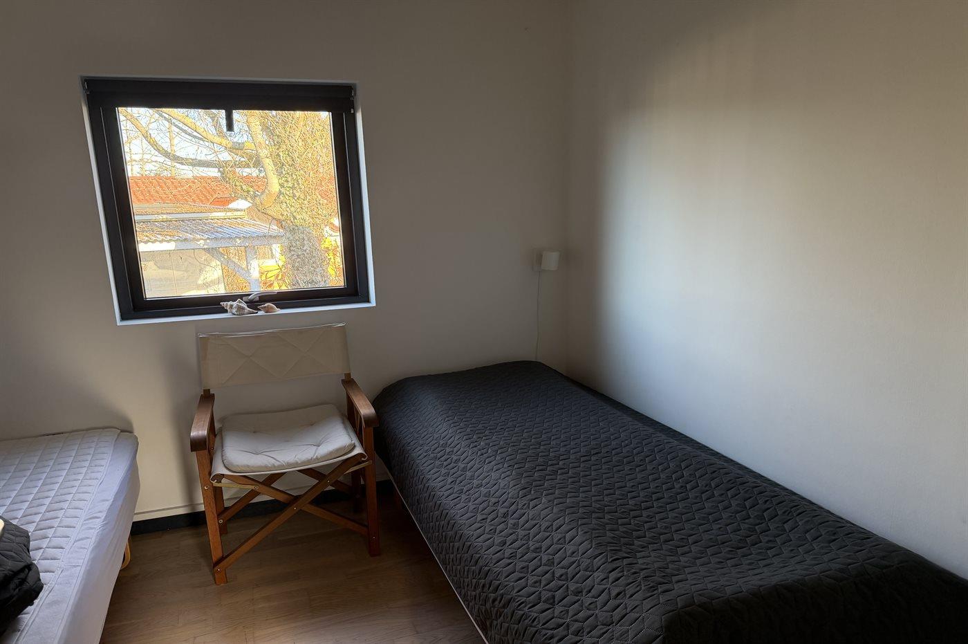 Der er i alt 2 soveværelser. Sovepladserne fordeler sig på: 2 sovepladser i dobbeltseng. 2 sovepladser i enkeltsenge.