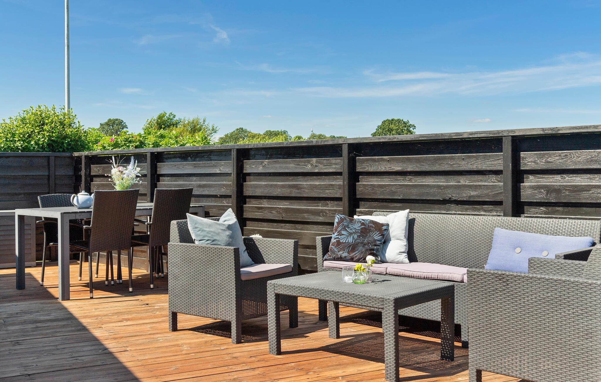 Her kan I lade dagen gå i gang i roligt tempo, mens I kigger ud på det store blå. Fra stuen venter samme smukke udsigt, og de skønne rammer gør uden tvivl, at alle hurtigt får skuldrene ned og nemt kan koncentrere sig om at holde fri.