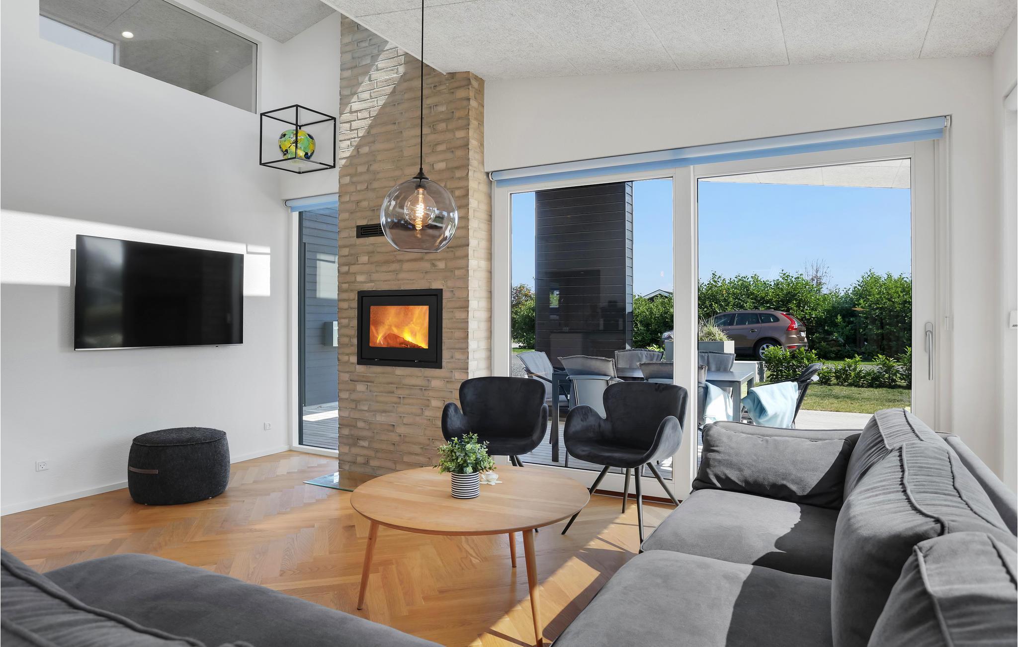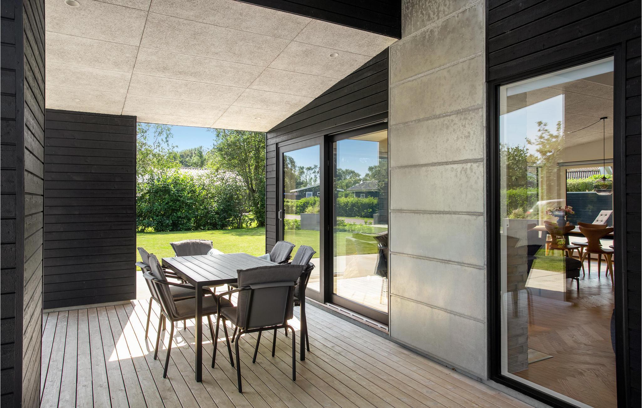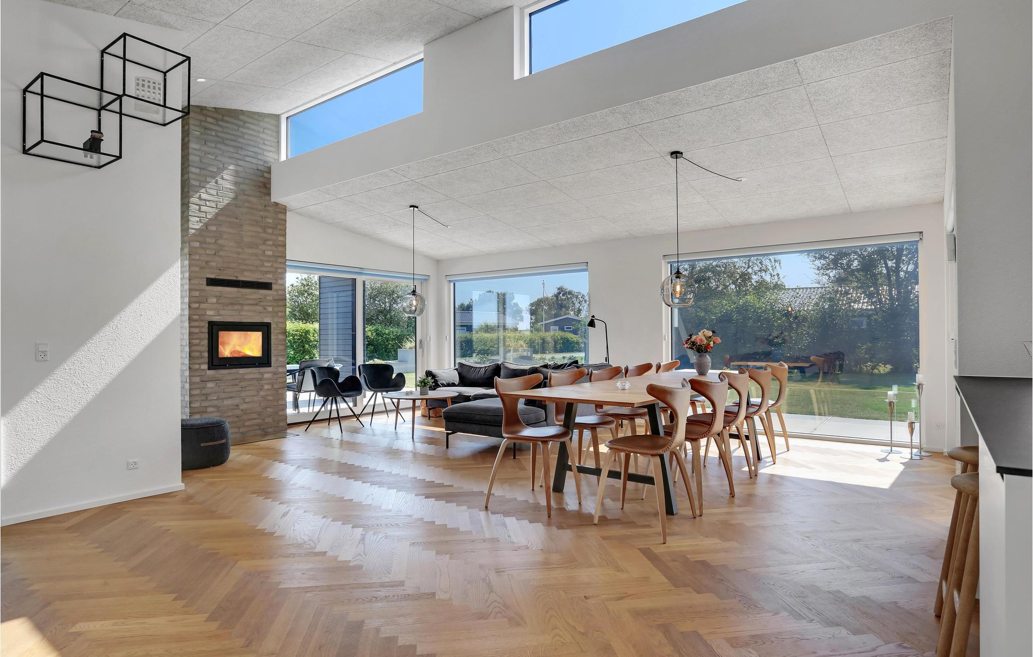 Dette fine, rummelige sommerhus er en herlig base til familien, der er på ferie i Nordjylland. Størrelsen og antallet af soveværelser gør det også nemt at følges med en anden børnefamilie, for der er god plads til alle. Det ene soveværelse ligger i annekset og er nemt at tilgå fra terrassen. Der er hyggeligt i den åbne, lyse stue, og mens I gør morgenmaden klar i køkkenet, kan børnene dække op eller hygge sig med et spil rundt om sofabordet. De store vinduesfronter giver en fantastisk udsigt til haven.