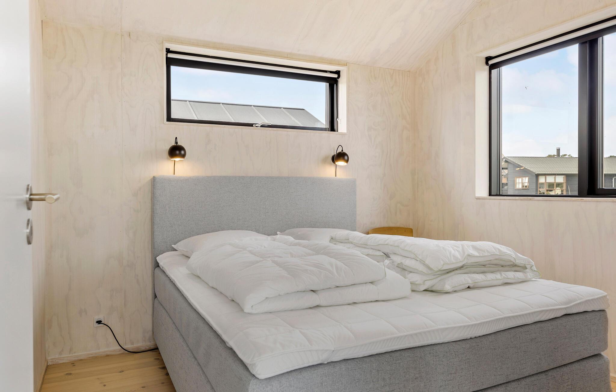 Feriehus i Sæby med panoramaudsigt over havet og kort afstand til stranden.