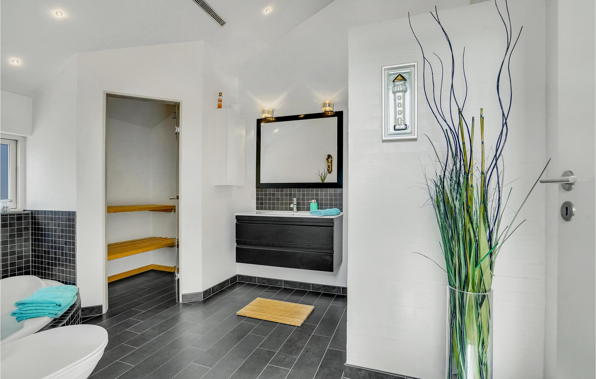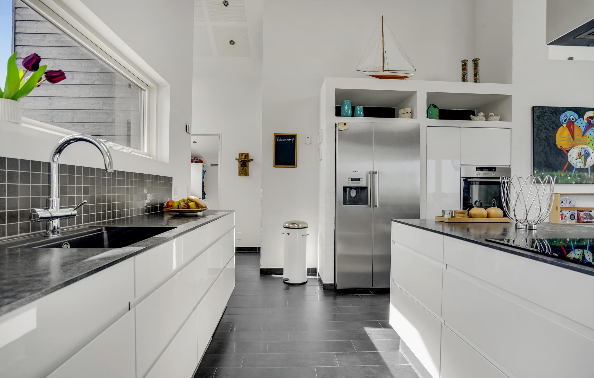 Dette lækre luksusferiehus ligger ved Sæby Strand, og har en skøn havudsigt. Huset er overalt optimalt indrettet og udstyret med lækkert udstyr og flotte møbler. Den praktiske køkkenafdeling ligger i forbindelse med den smukt møblerede stue, hvorfra der er udgang til terrassen. Lækkert badeværelse med spabad og sauna. Huset fremtræder i en flot arkitektur og er samtidig meget rengøringsvenligt med bl.a. et centralstøvsugeranlæg. De skønne terrasser giver fine muligheder for udeliv hele dagen. Her er I virkelig tæt på den fine badestrand og strandpromenaden der går helt ind til Sæby havn og den charmerende gamle bydel.
