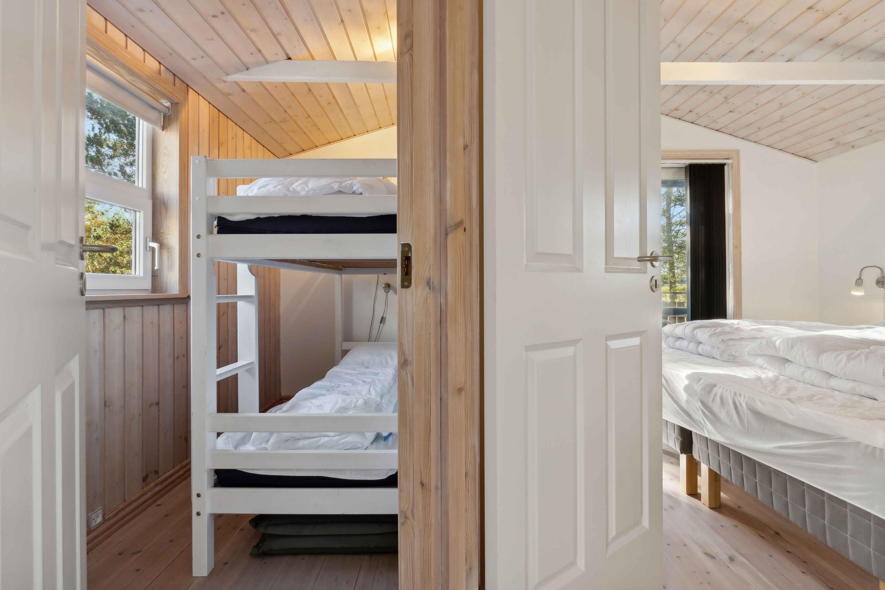 Få hundrede meter fra vandet i det fredelige sommerhusområde ved Lyngså Strand ligger dette dejlige fritidshus, som er perfekt til afslappende feriedage. Stranden er ideel til familier med børn, da den er både børnevenlig og sikker til badeaktiviteter. Huset har plads til 4 voksne og to børn. Køjesengene er kun egnet til børn op til 12 år. Hvis I er til naturoplevelser, kan I følge klitterne nordpå og udforske Professorens Plantage, som indbyder til hyggelige gåture og udflugter. Området omkring huset er kendt for sin ro og smukke natur, men kun otte kilometer væk finder I Sæby, en charmerende kystby med hyggelige brostensbelagte gader og et farverigt havnemiljø. Her kan I nyde lokale restauranter, caféer og butikker, som giver en skøn kontrast til naturens ro. Havnen er en hyggelig oase, hvor I kan gå ture, kigge på både eller bare slappe af med en is. Lyngså-området er ideelt for feriegæster, der ønsker at kombinere strandferie med spændende udflugtsmål. I nærheden finder I også cykel- og vandrestier samt gode fiskemuligheder, så uanset om I er til afslapning eller aktiv ferie, er der noget for alle. Fritidshuset ligger på en stor, naturskøn grund på 1.109 m2 med en hævet terrasse, hvor I kan nyde udsigten over den kuperede natur. Haven er let at vedligeholde, og de tilhørende udhuse gør det nemt at opbevare strandudstyr eller cykler. Indenfor byder huset på 96 m2 med en lys stue, tre soveværelser og et veludstyret køkken. Badeværelset er moderniseret med spabadekar og sauna – perfekte til afslapning efter en dag med oplevelser i området.