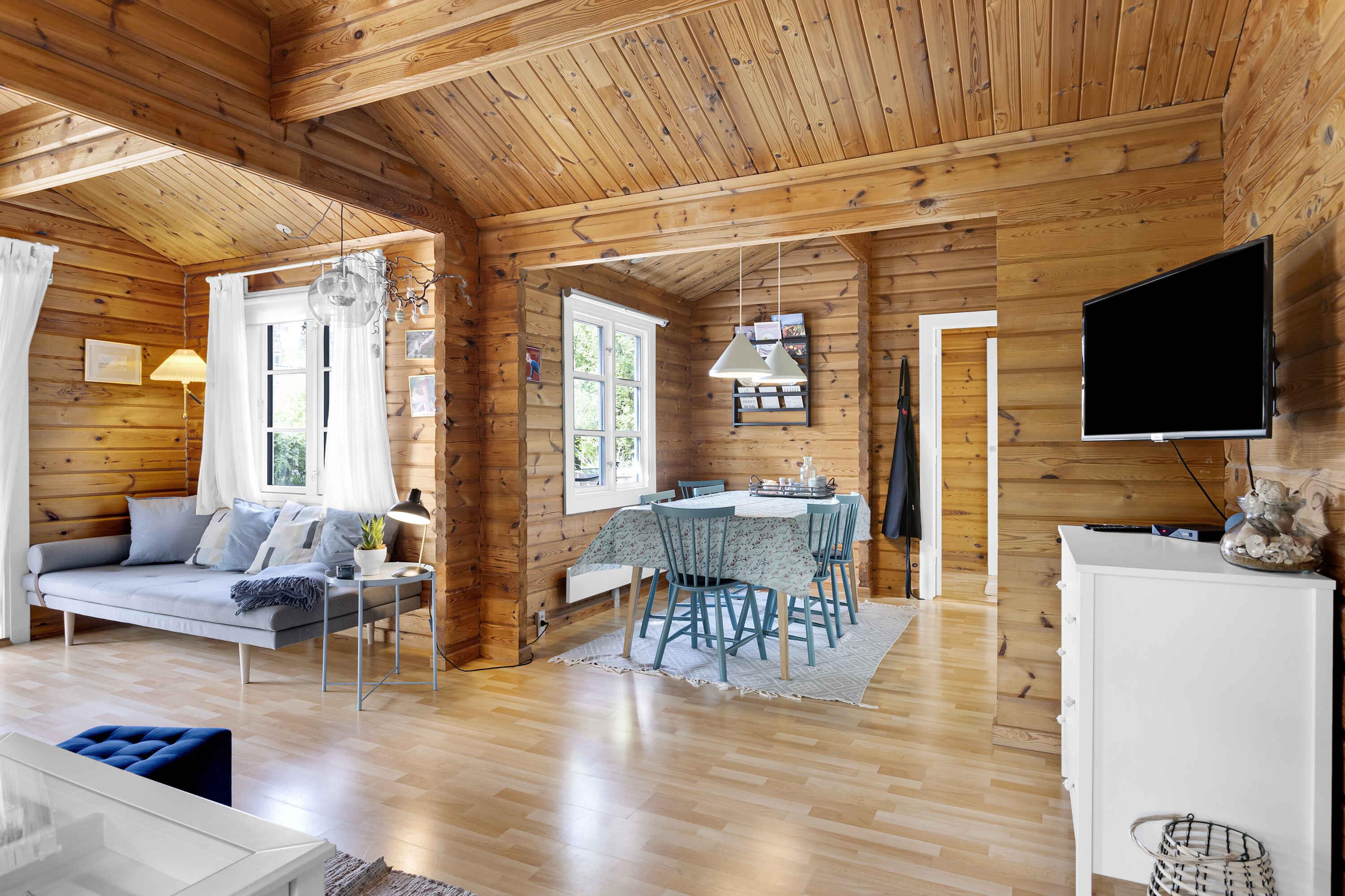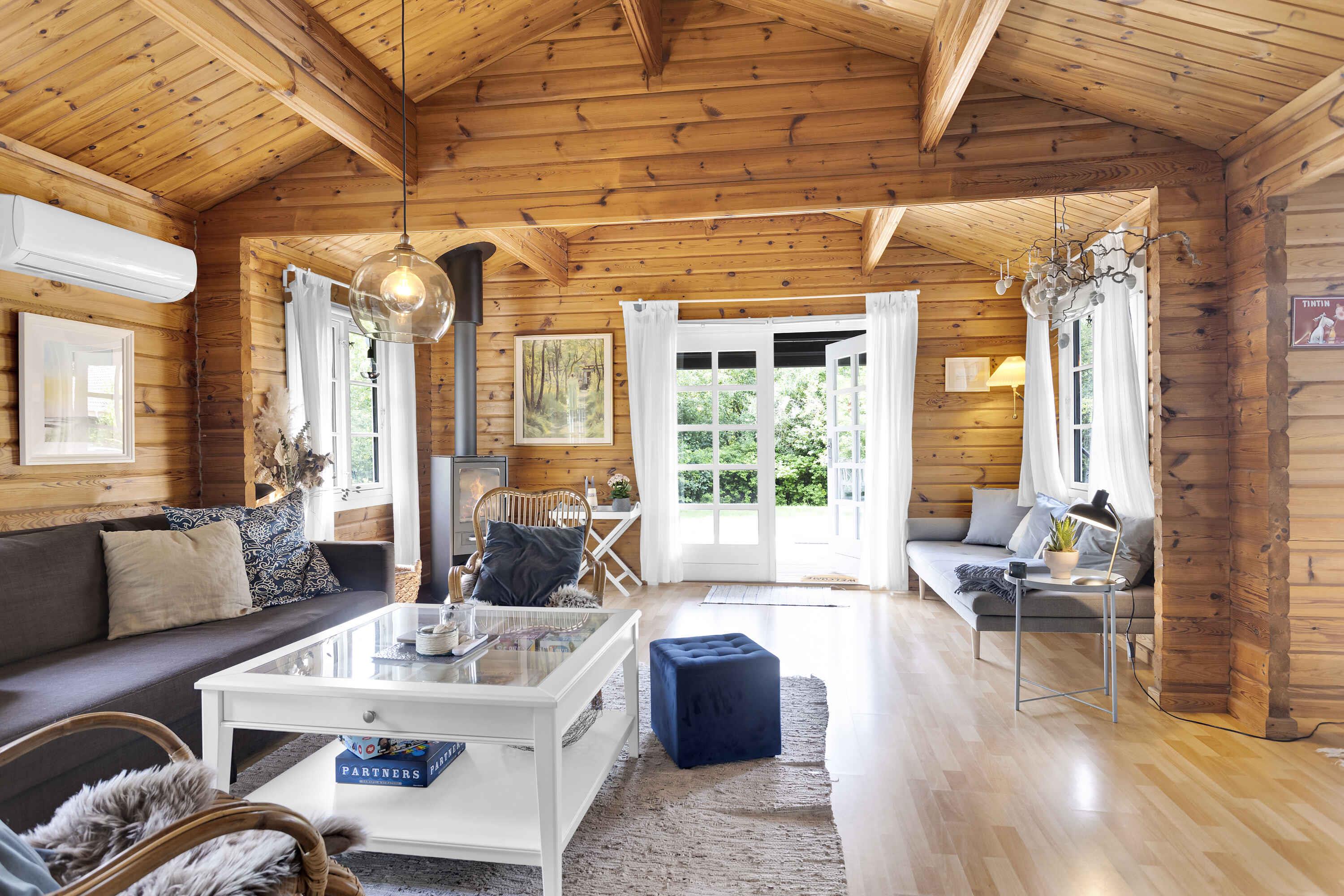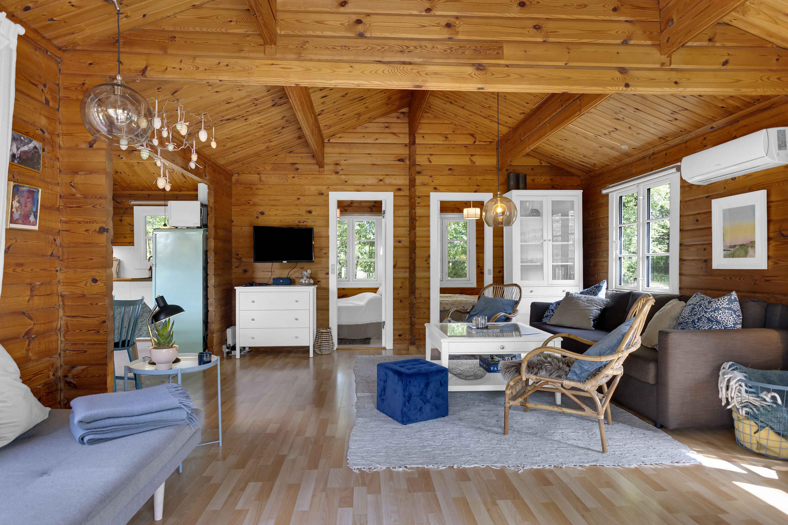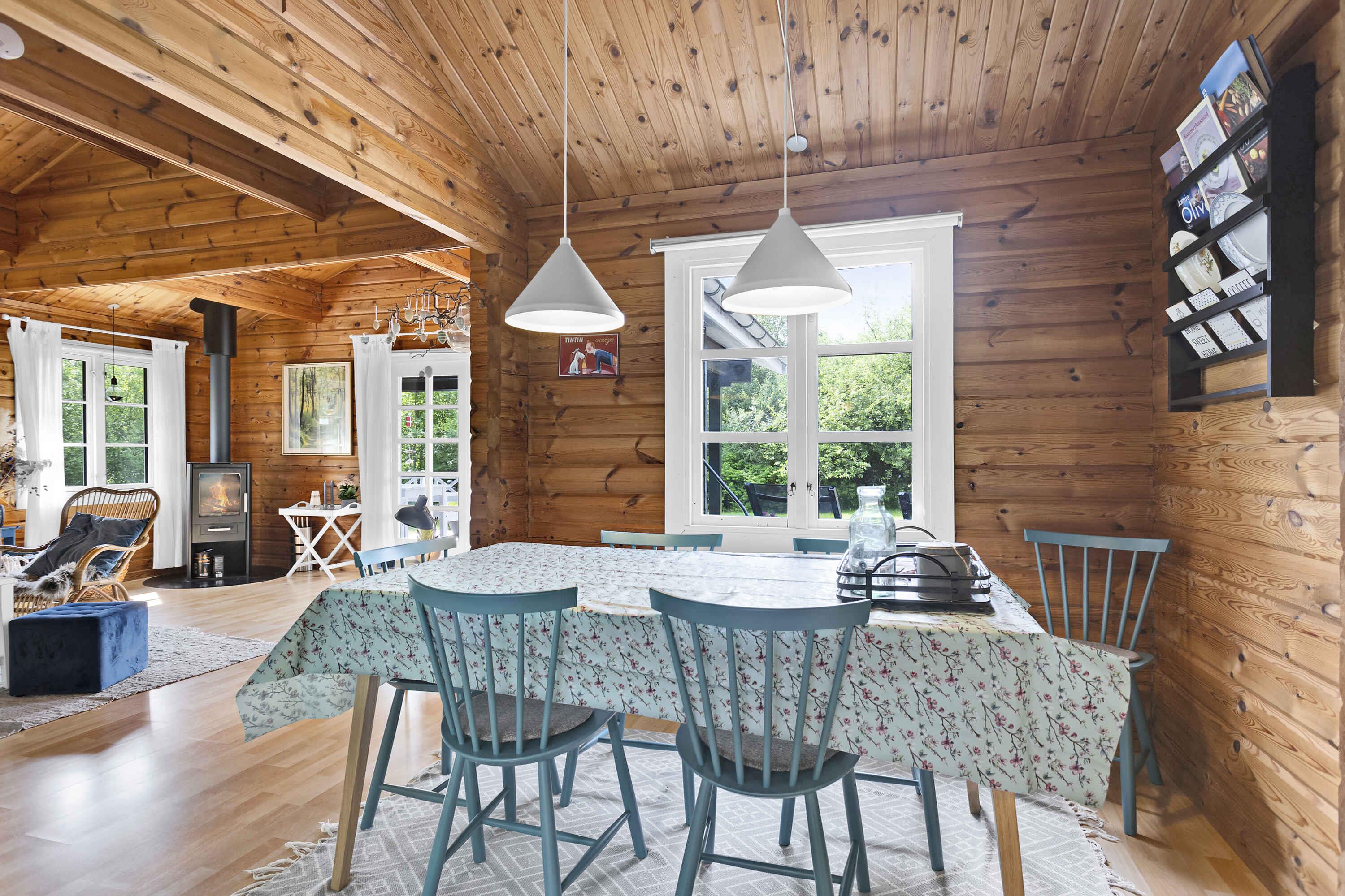 Smukt beliggende bjælkehus ved natur og strand