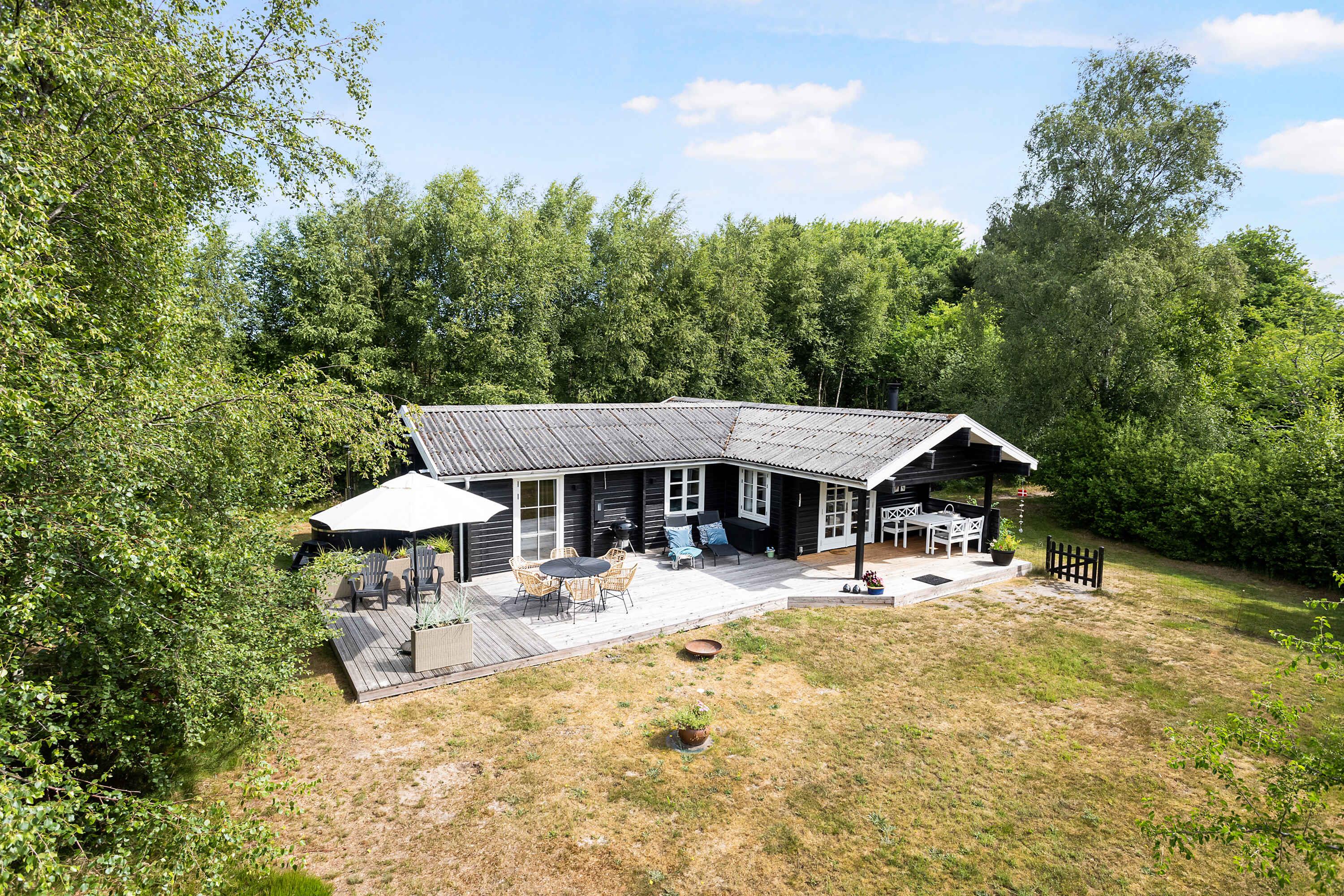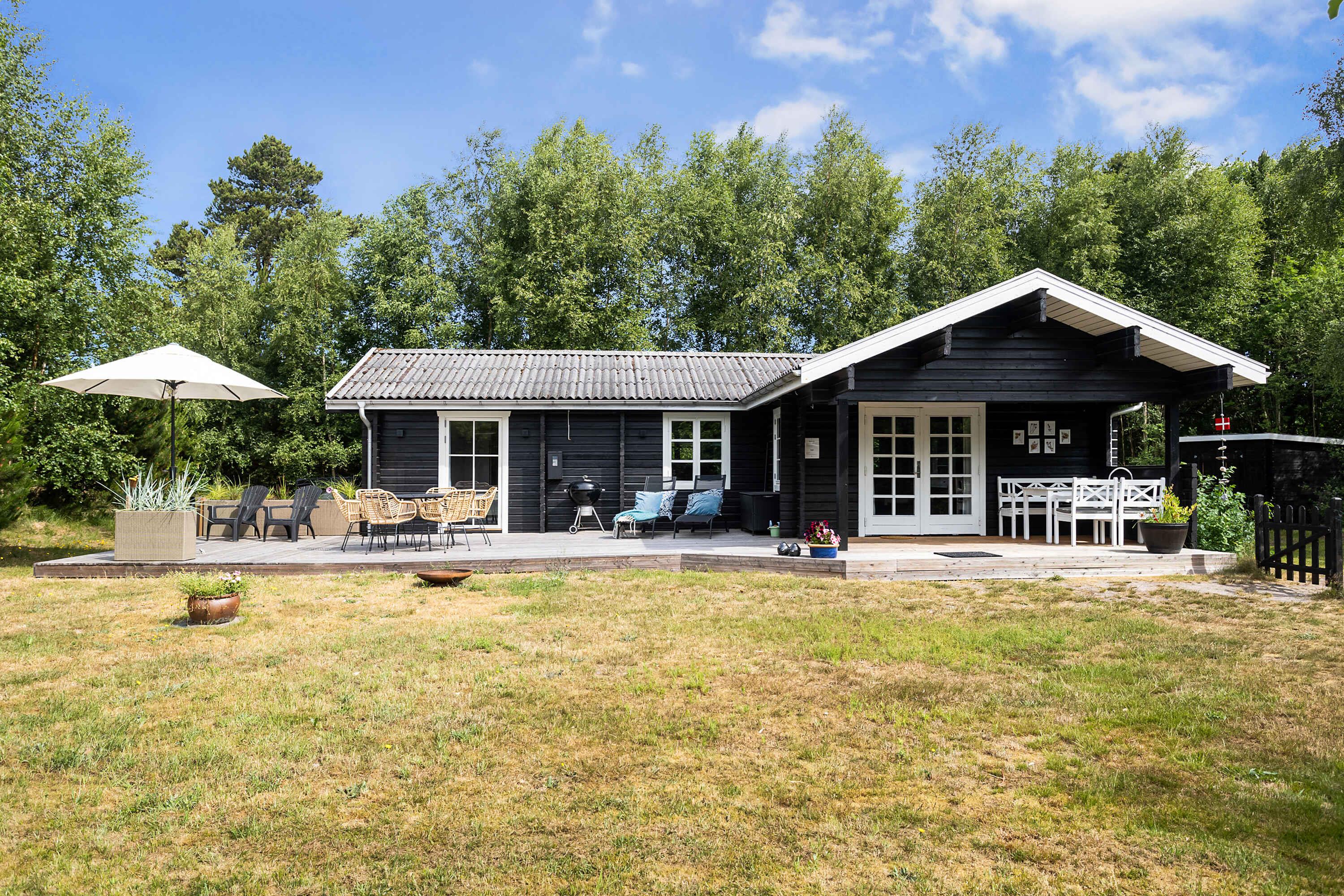 Skønt bjælkehus med 3 værelser - attraktivt beliggende i Lyngså syd for Sæby ud til fredet plantage og tæt på Kattegat