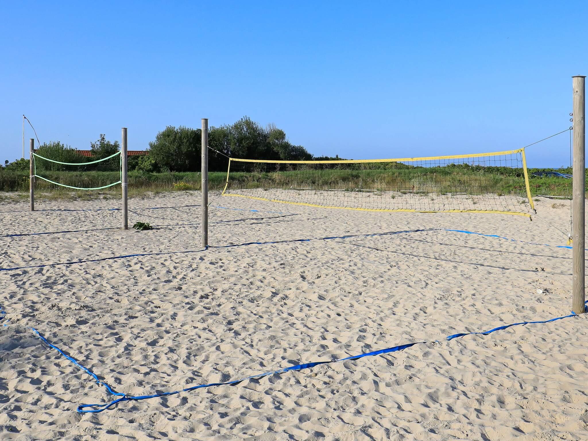 Beach Volleyball baner med internationale mål ved feriecenteret. Der er også en petanquebane.