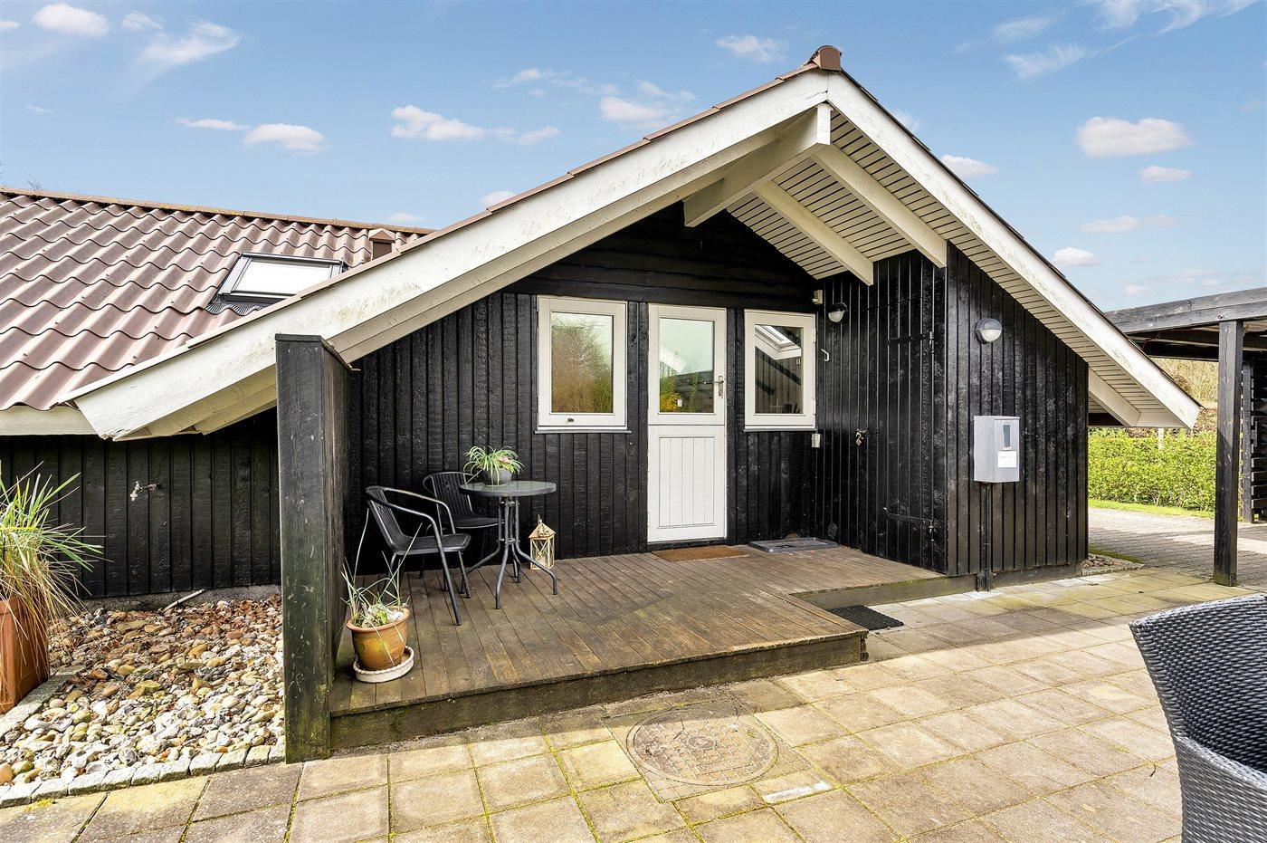 Ferieboligen er beliggende på en 825 m² stor naturgrund. Der er 6000 m til havet. Der er 250 m til fjorden. Til ferieboligen hører åbent terrasseareal. Der er carport til rådighed. Parkering ved ferieboligen.