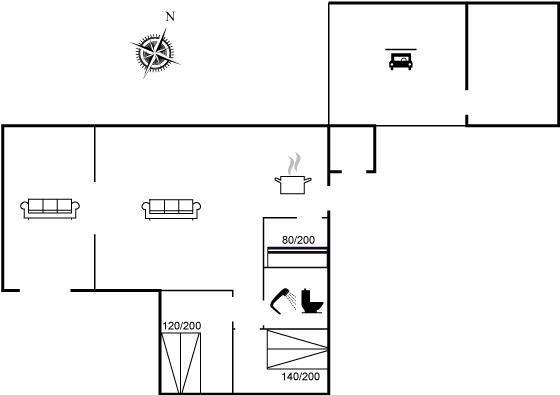 Der er i alt 3 soveværelser. Sovepladserne fordeler sig på: 2 sovepladser i dobbeltseng. 1 soveplads i enkeltseng. 2 sovepladser i køjeseng.