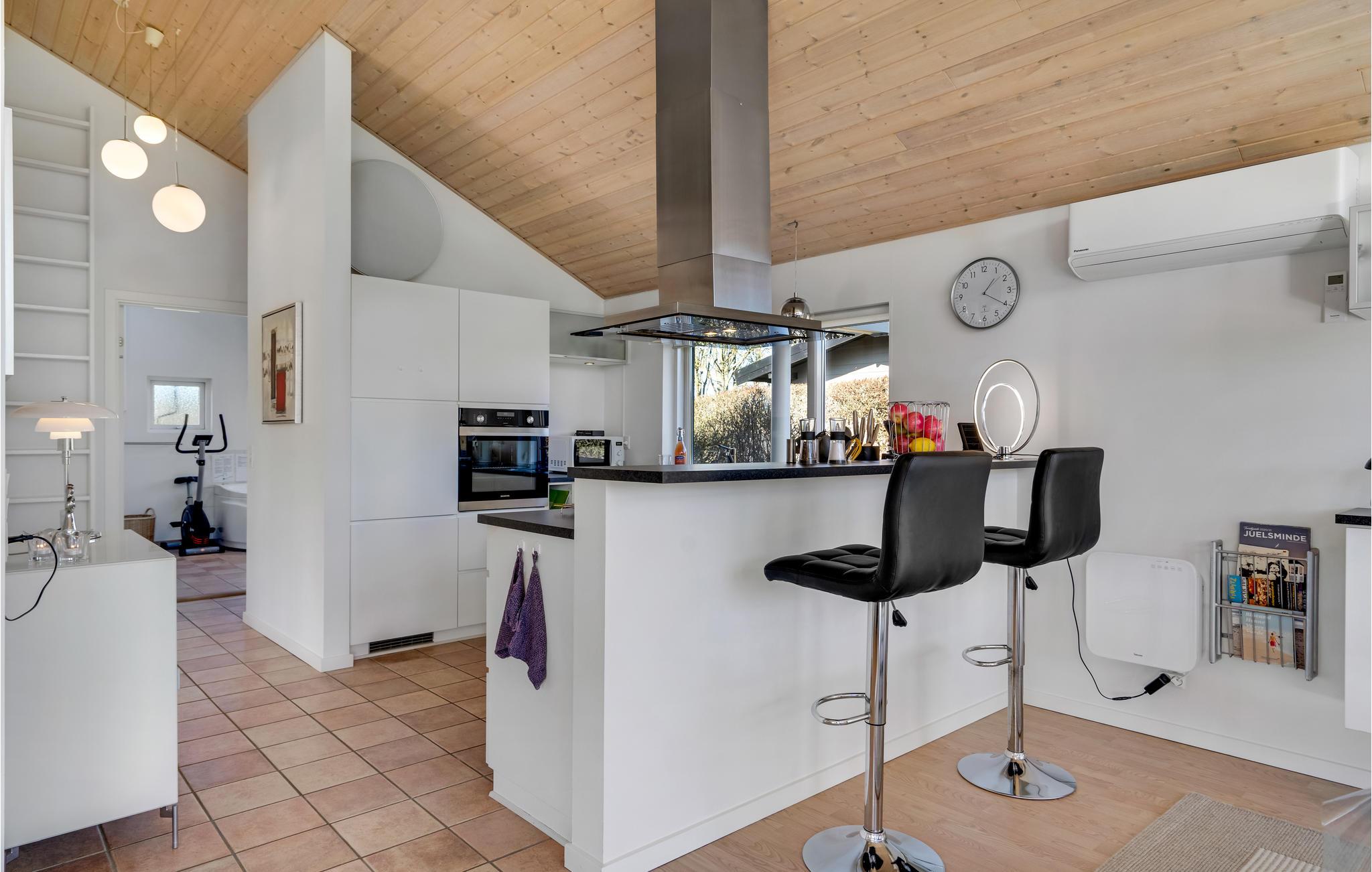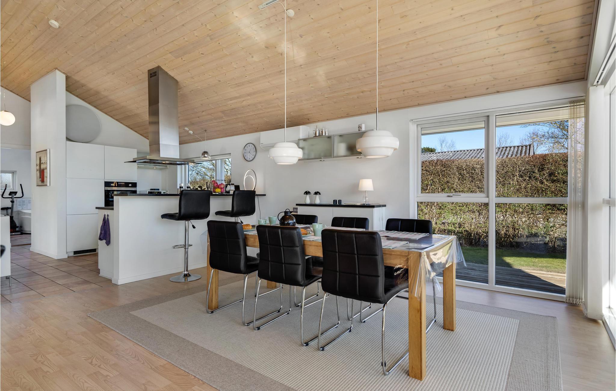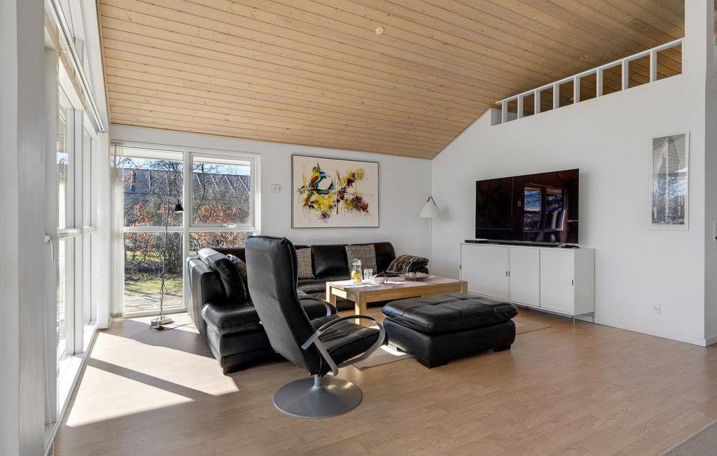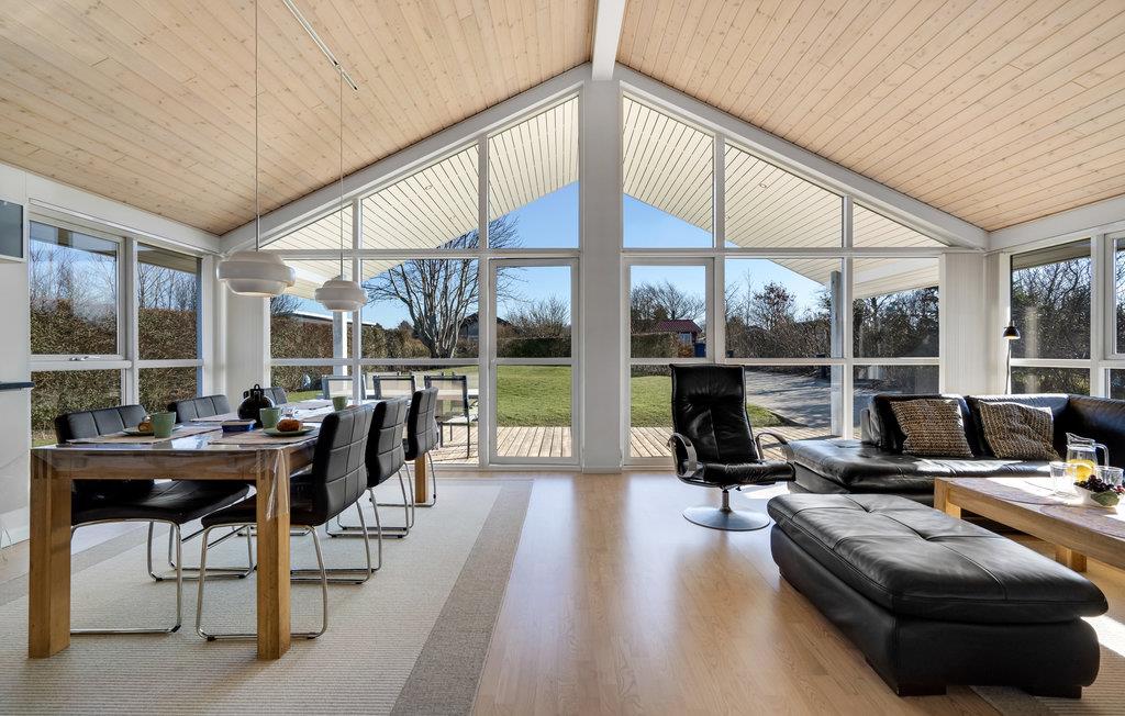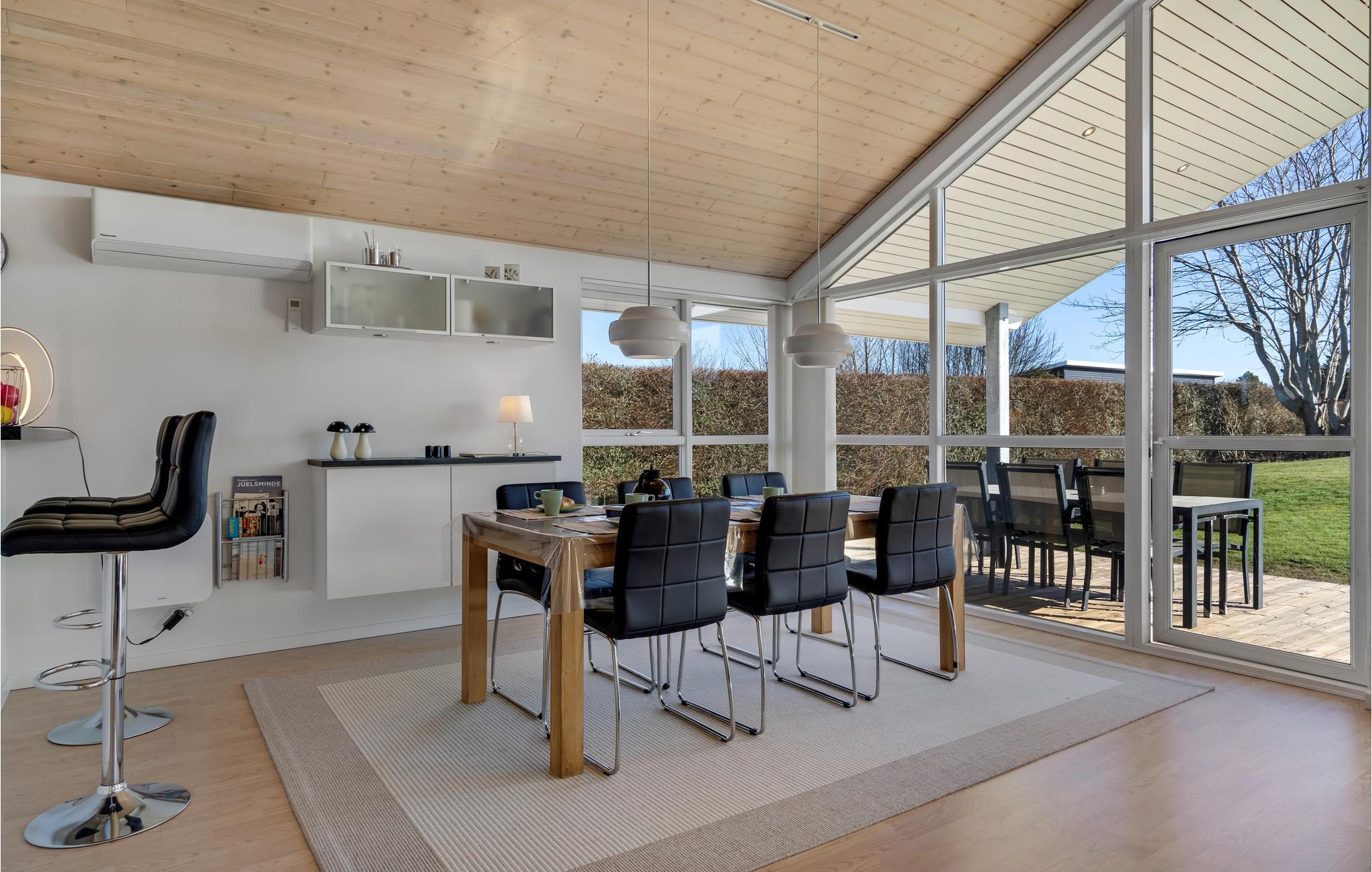 Huset er moderne og stilrent indrettet med et vidunderligt dagslysindfald, hvilket giver jer en behagelig ramme om samværet uanset årstid. Nyd dagens måltider omkring det lange spisebord med udsigt gennem havens store panoramavinduer, og efter en lang dag på farten kan I læne jer tilbage i sofaerne, se en film, spille brætspil og snakke om alle de gode oplevelser.
