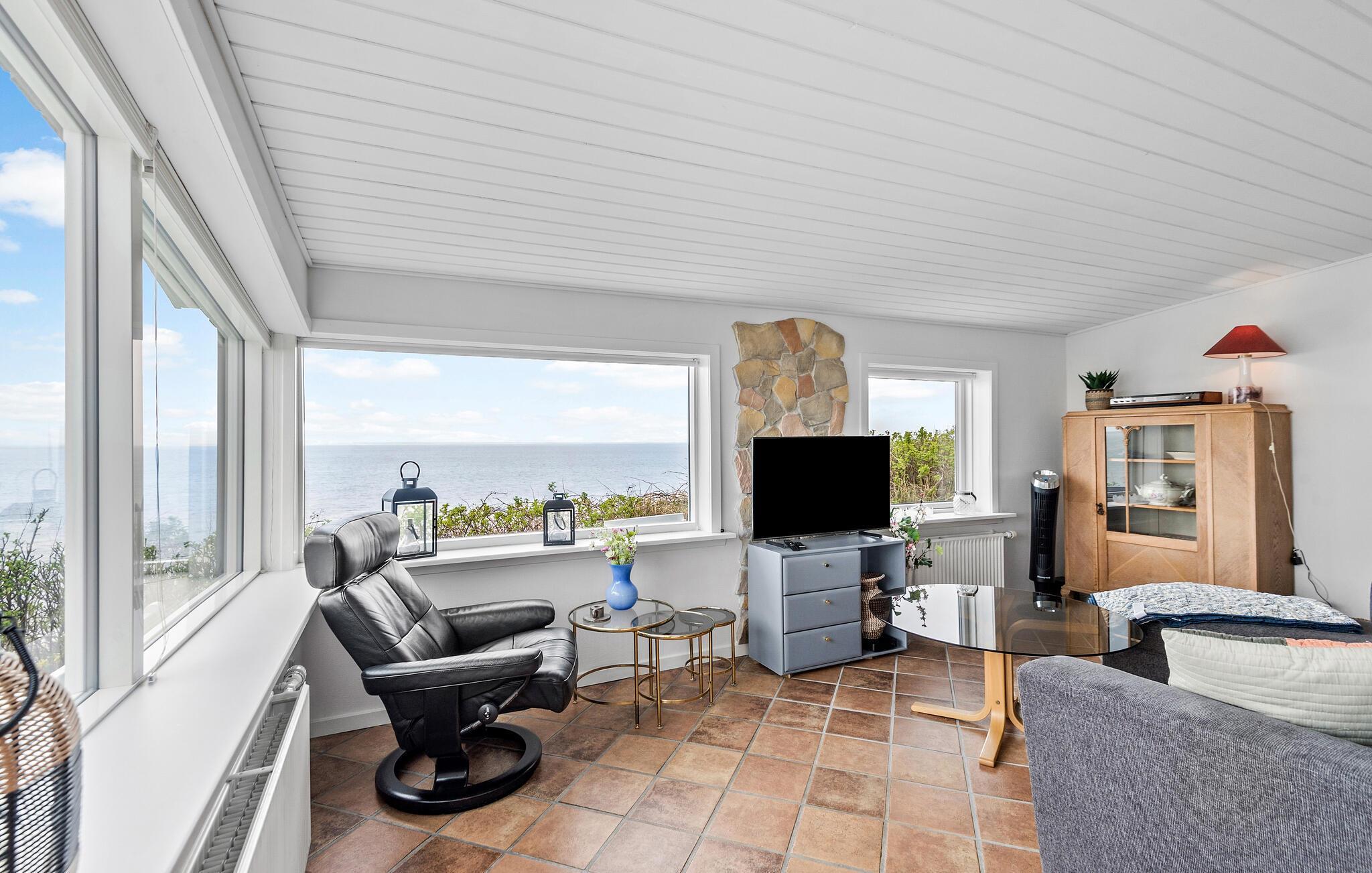 Med en drømmeagtig beliggenhed kun få skridt fra stranden byder dette feriehus jer velkommen til en ferie af første kaliber. De lyse værelser og den smagfulde, moderne indretning giver jer de optimale betingelser for skønne feriedage med familien. Huset er indrettet med øje for, at I kan nyde den unikke udsigt, hvad enten I laver mad sammen, spiser foran de store panoramavinduer eller slapper af i den indbydende sofaafdeling. Tænd op i brændeovnen på kølige dage, sæt jer godt til rette og lyt til flammernes knitren og havets bølger, der suser svagt i baggrunden.