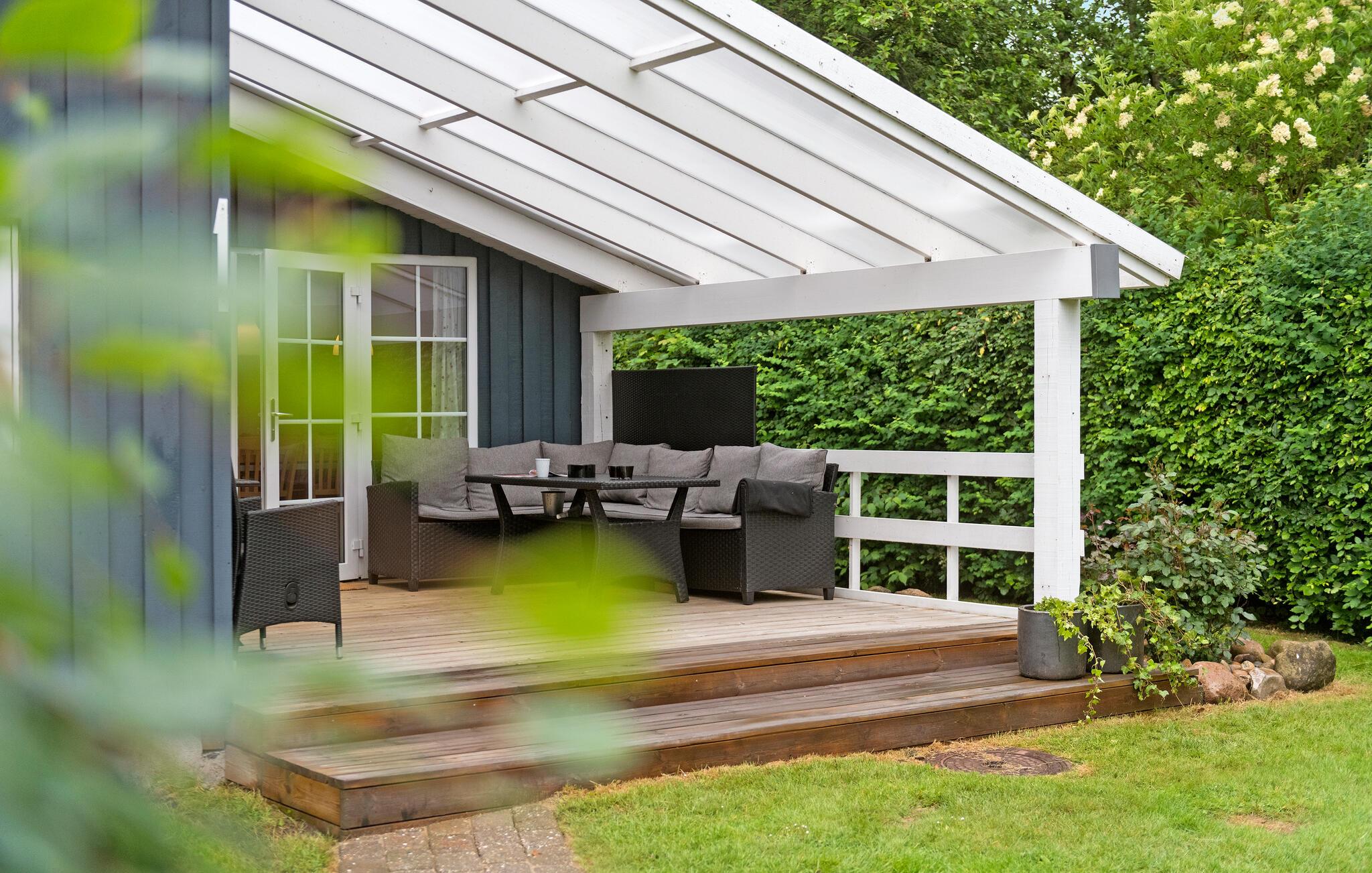 Til huset hører to terrasser, der delvist overdækkede, så I kan finde sol, skygge og læ efter behov på de smukke sommerdage. Læs avisen, drik en god kop kaffe og hold øje med børnene, der løber rundt og leger i haven. Hvis vejret holder hele dagen, kan I tilberede nogle gode bøffer på grillen og dække op til en lækker aftensmad under den lune sol.