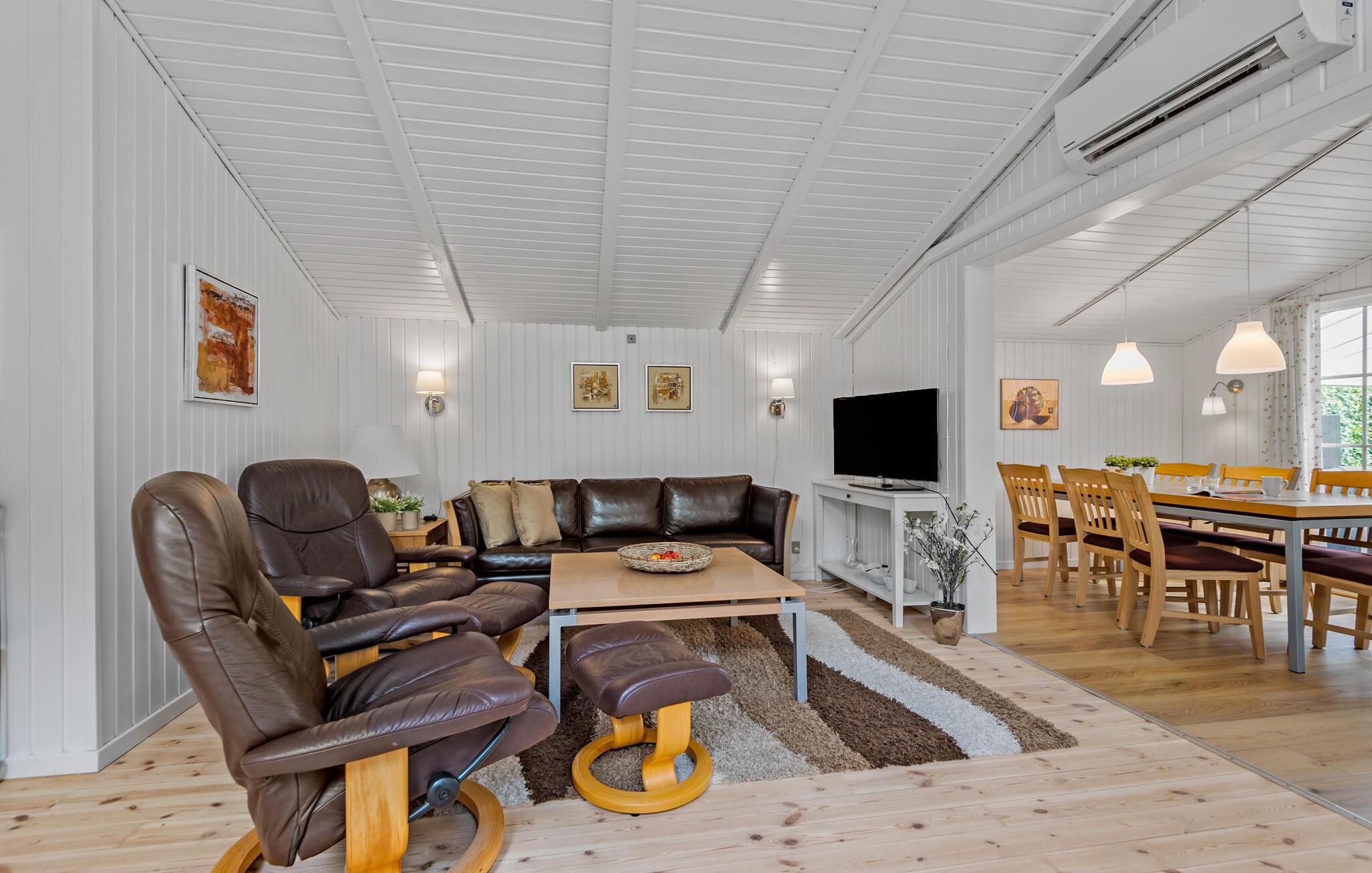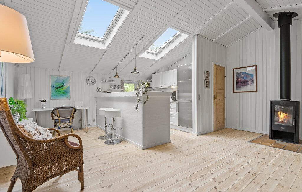 Tag familien under armen og rejs til Sædding, hvor I i dette moderne træhus får en fantastisk ramme for et allelunde vidunderligt ophold i skønne omgivelser. Huset er virkelig flot indrettet med loft til kip og dejlige lysindfald både fra oven og fra siden, der giver det indre et lyst og luftigt udtryk. Køkkenet er fuldt udstyret, så tag jer blot god tid med madlavningen og tænd op i brændeovnen, der giver varme og et knitrende lydtapet, hvis vestenvinden bider lige vel meget fra sig. Lad en dejlig dag gå på hæld i det komfortable sofahjørne med snacks, brætspil eller en god film på tv'et, mens I lægger planer for de kommende dage.
