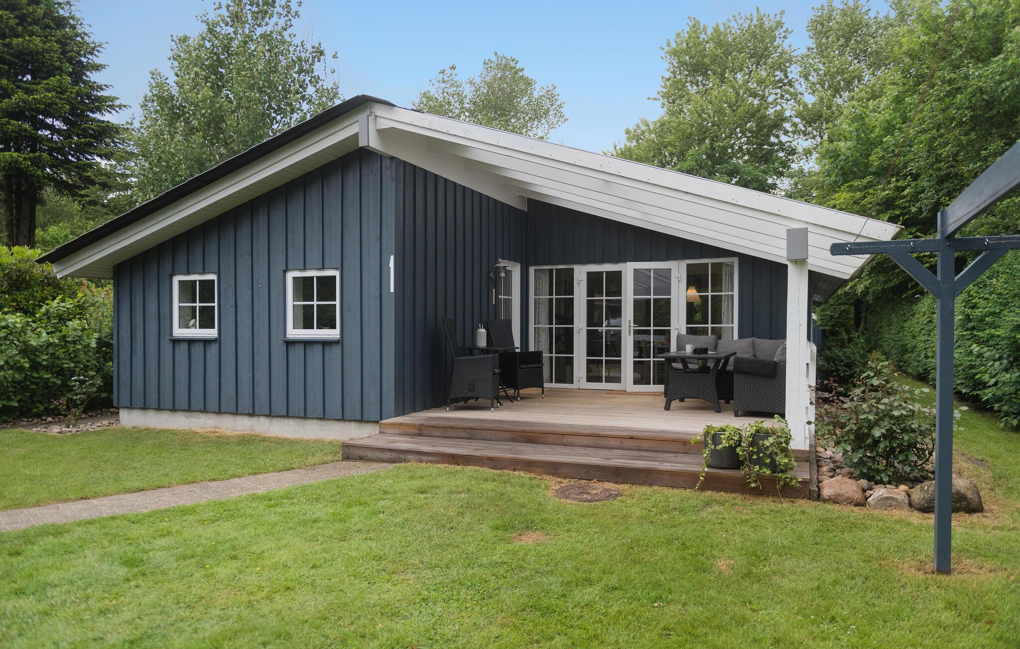 Flot og moderne træhus i Sædding nær Vesterhavet med to terrasser og hyggelig brændeovn.