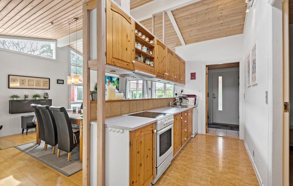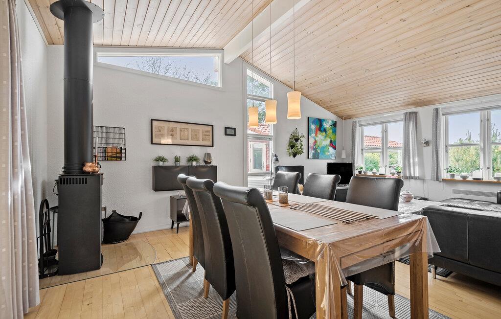 Tag familien under armen og rejs til Sædding, hvor der i fredelige omgivelser kun få skridt fra stranden venter jer en dejlig base i dette charmerende træhus. Indvendigt emmer det af hygge med varme træpaneler, komfortable møbler og en brændeovn, der giver varme og stemning, hvis vestenvinden skulle bide lige vel meget fra sig. Tilbered en lækker aftensmad i det veludstyrede køkken og træk ud i udestuen, hvor I kan lade aftenen gå på hæld med brætspil og et glas vin med udsigt til haven.