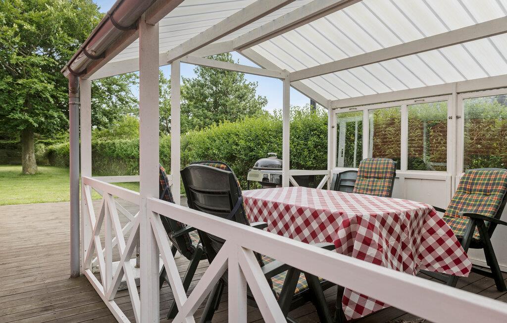 Til huset hører en fin have og en skøn, overdækket terrasse, hvor I kan nyde alle dagens måltider på de lidt varmere dage. Begynd dagen med en god kop kaffe i det fri og lad børnene lege i haven, inden I tager på tur.