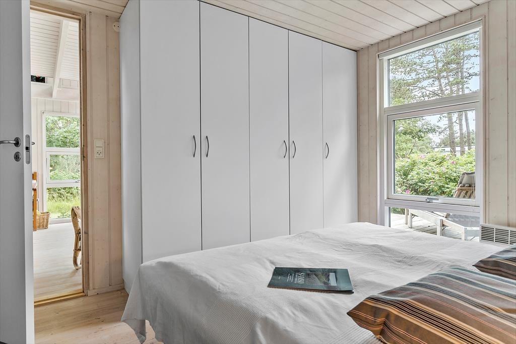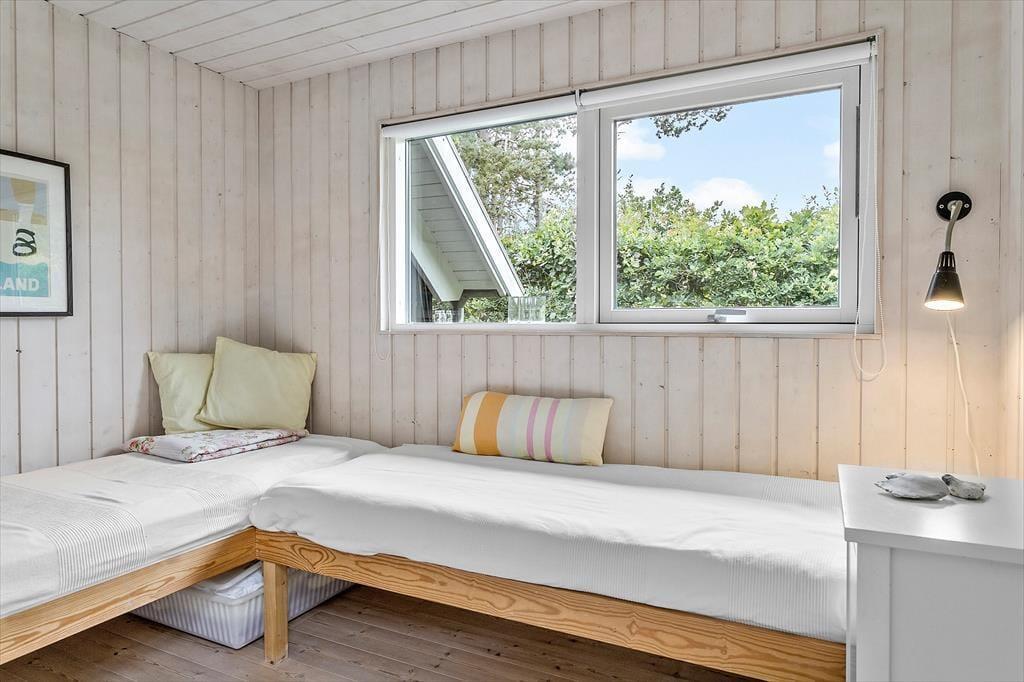 I stueetagen er der også to soveværelser. Det ene soveværelse har en god dobbeltseng og skabsplads, mens der i det andet værelse er to enkeltsenge. Soveværelserne er indrettede i samme lyse og rolige farver.