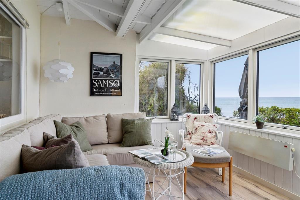 Velkommen til dette sommerhus med en helt unik beliggenhed i første række til havet på Samsø.
