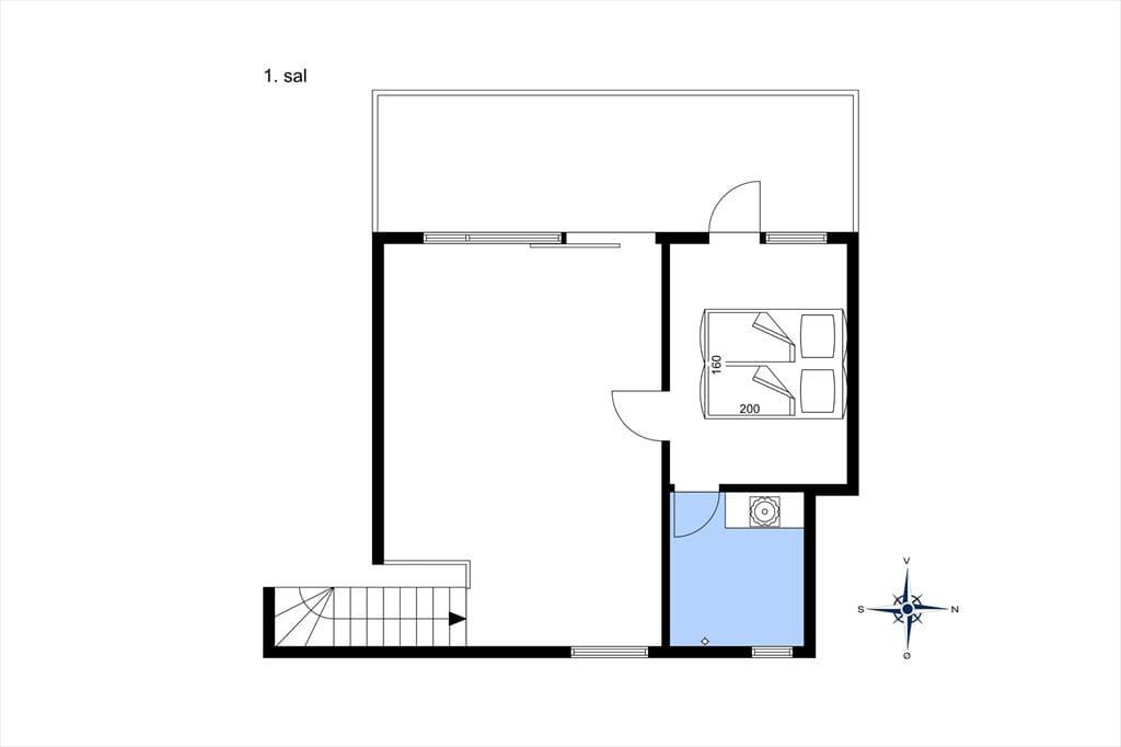På 1. sal er der endnu et dejligt opholdsrum med en komfortabel sofa, der indbyder til hygge og afslapning. Det er perfekt at sidde her og nyde udsigten fra de store vinduer ud mod havet. Vil man have afveksling fra den flotte udsigt, kan man tænde for TV´et, der har parabol med bl.a. danske, tyske og svenske tv-kanaler. Derudover er der WiFi i huset til fri afbenyttelse. Fra stuen er der udgang til en balkon, der giver den bedste udsigt over den åbne grund og Samsøs vestkyst, der er kun 150 meter fra huset. Her er der garanti for smukke solnedgange og mindeværdige øjeblikke.