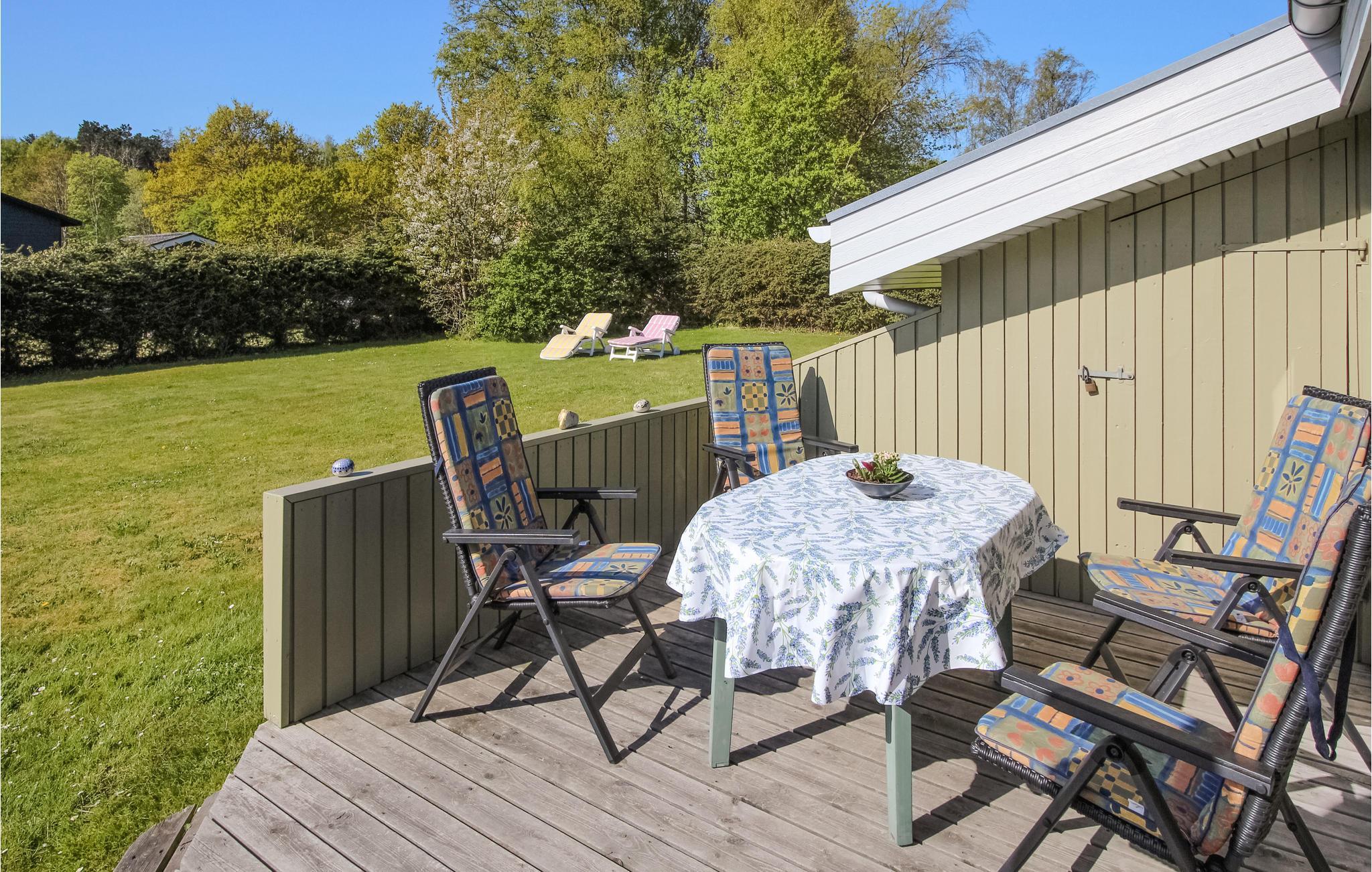 Udenfor kan I nyde feriens måltider på terrassen i læ for vinden. Haven byder på masser af plads til leg og spil, eller I kan lægge jer til rette i en liggestol og nyde solen.
