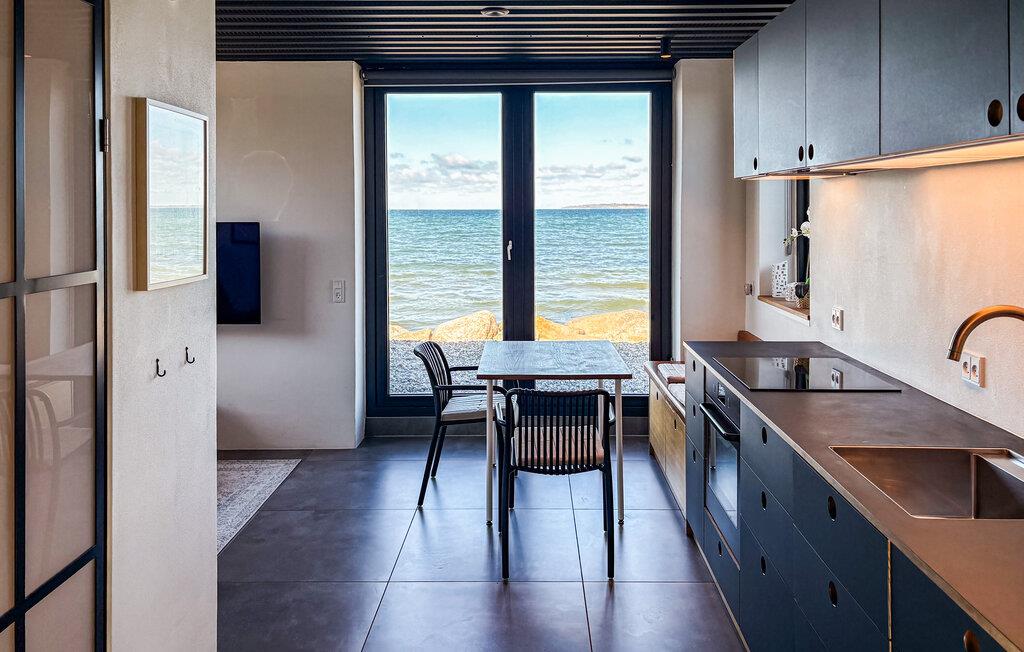 Her kan I virkelig tilbringe jeres ferie kun et stenkast fra havet. Den smagfulde indretning med materialer af bedste kvalitet og mange hyggelige hjørner gør huset til det ideelle sted for en afslappende ferie, hvor I også kan tage jeres hund med. De mange vinduer viser den fantastiske beliggenhed og den betagende udsigt. Sæt jer til rette i saunaen med havudsigt og nyd de smukke omgivelser og kom helt ned i gear.
