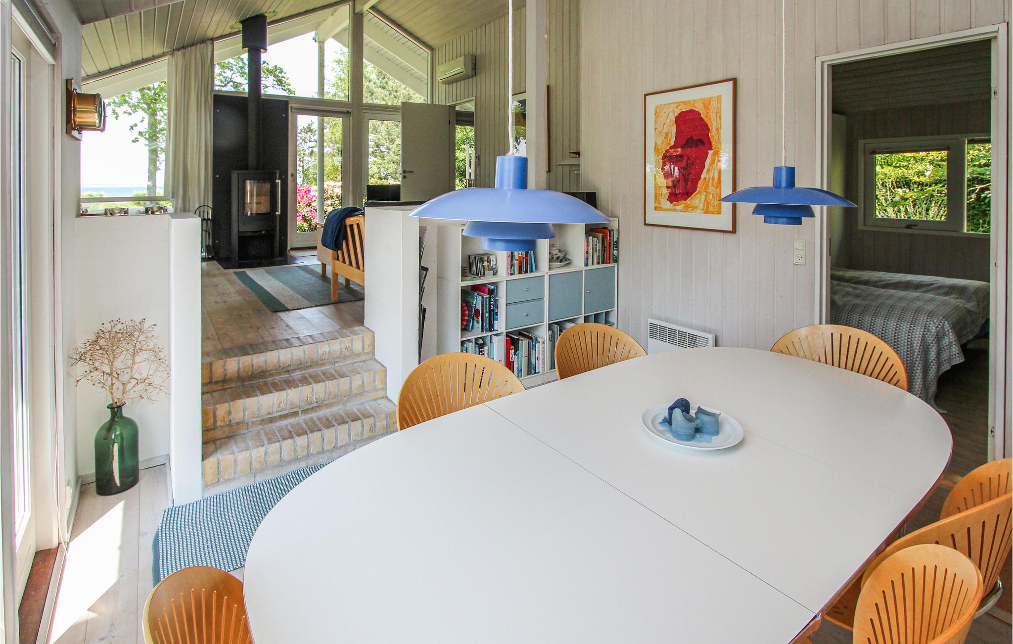 Det lyse og moderne opholdsområde indbyder til at tilbringe så meget tid som muligt sammen på ferien. Nyd en fantastisk udsigt over havet, og varm jer i saunaen efter en lang, forfriskende vandretur i Samsøs natur.
