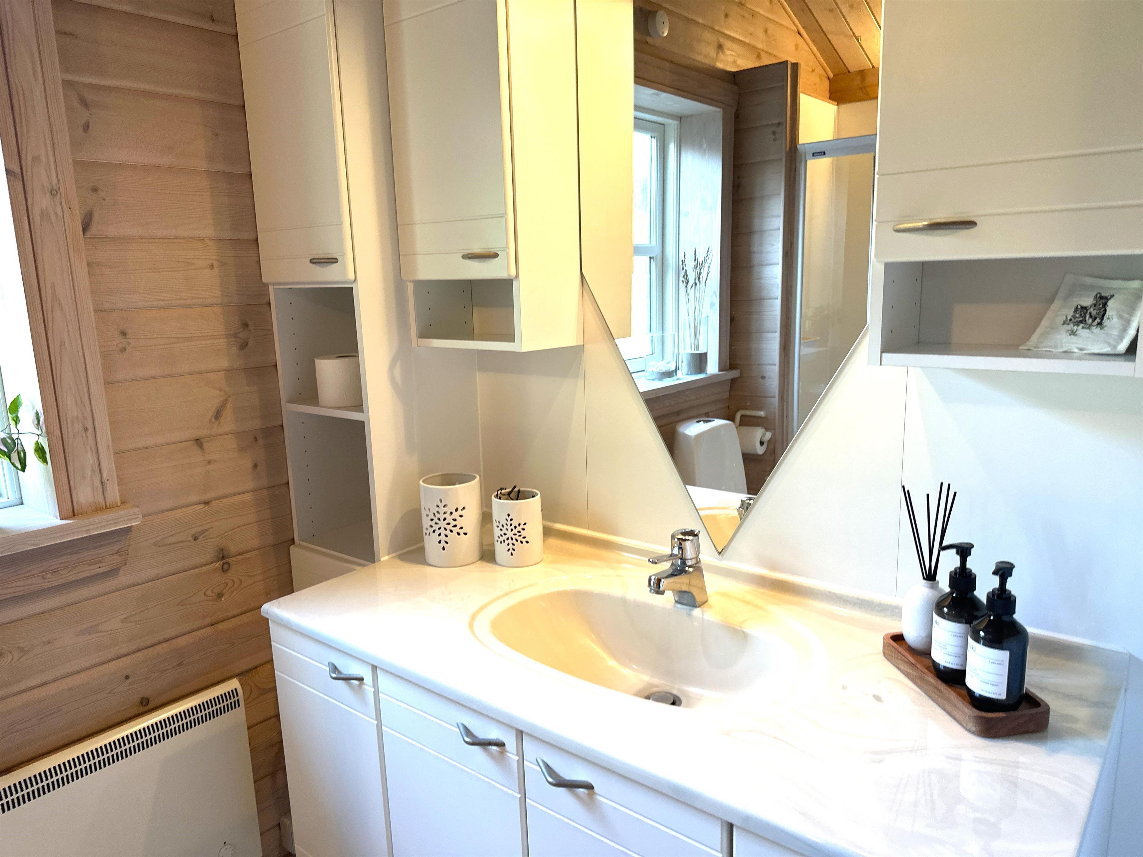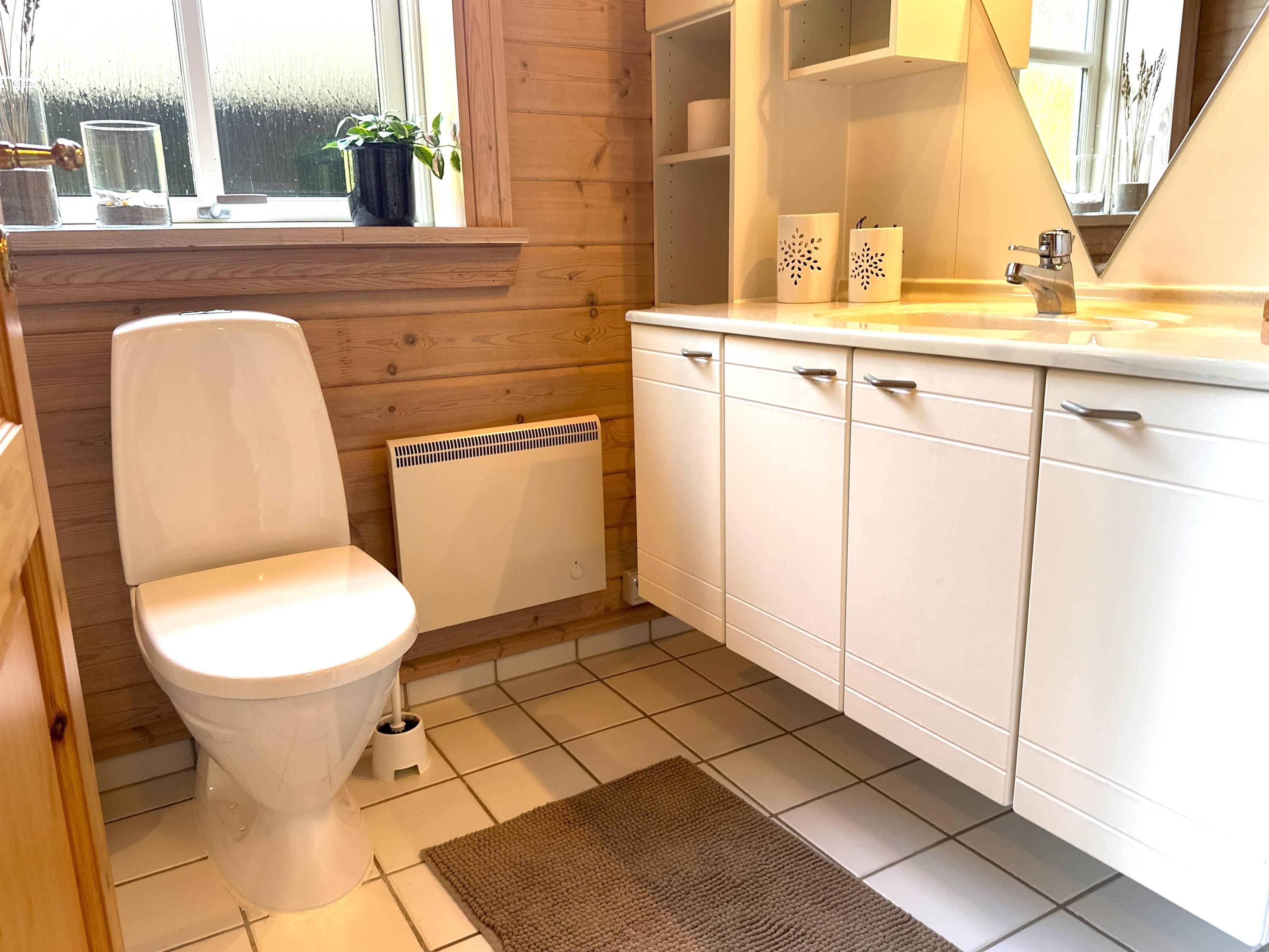 Huset byder på fire soveværelser, så der er god plads til alle. To af værelserne har dobbeltsenge, et værelse har to enkeltsenge, og det fjerde værelse har en enkeltseng. Derudover er der to badeværelser, begge med brusekabine, så morgenerne kan glide let, selv når I er mange.