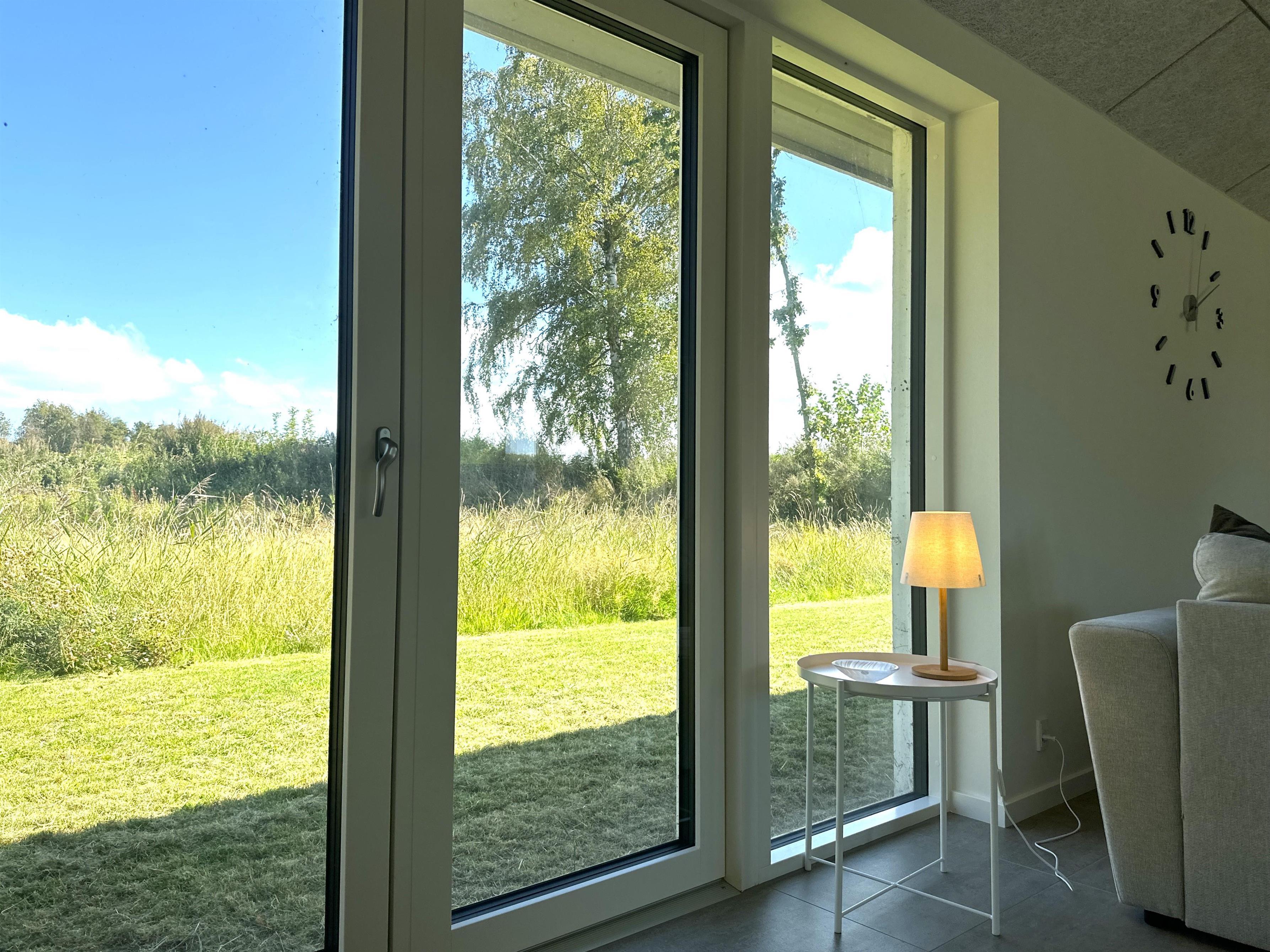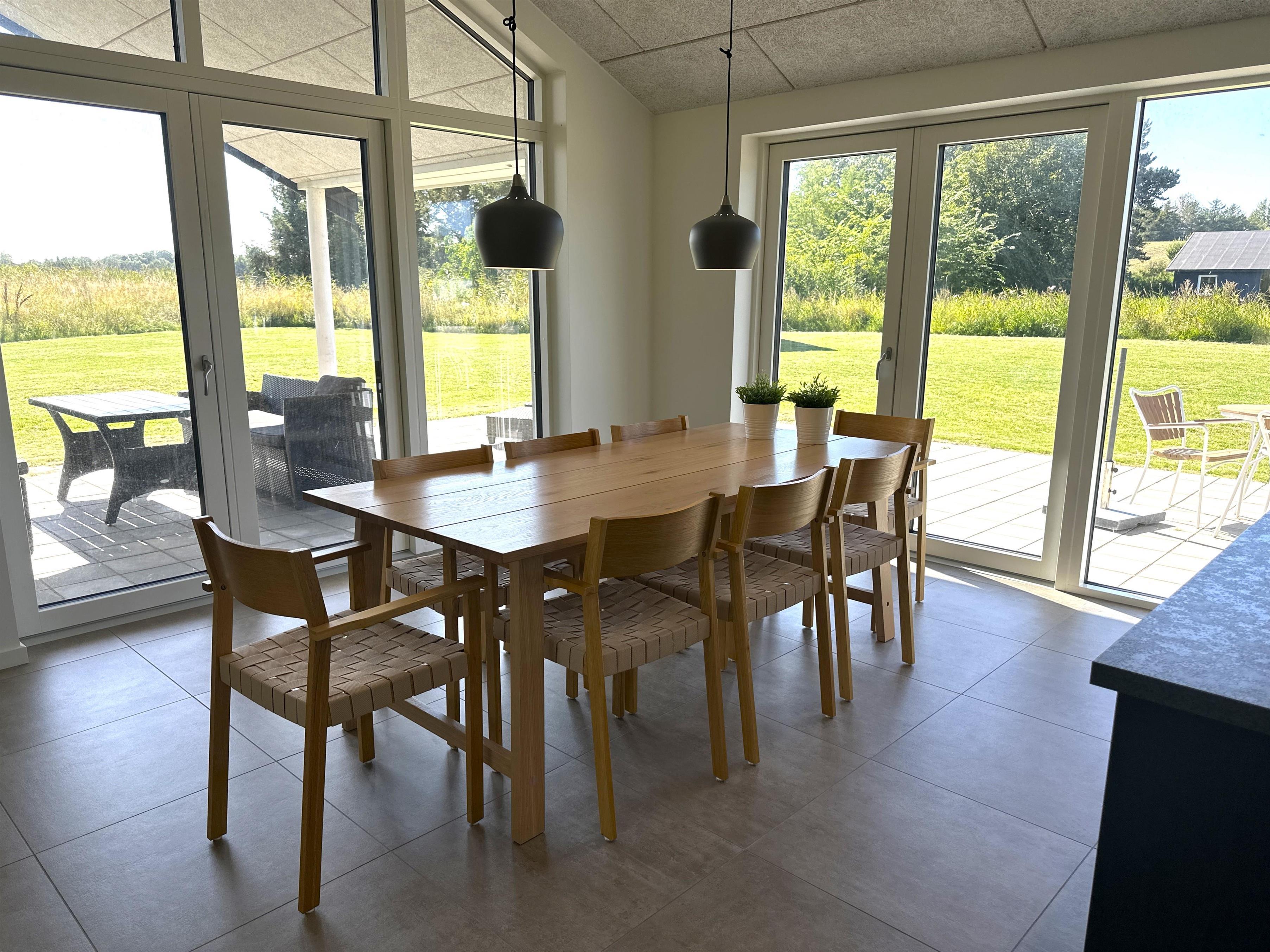 Huset har plads til 6 personer og er rummeligt med store vinduespartier, der lader lyset strømme ind og bringer naturen helt tæt på.