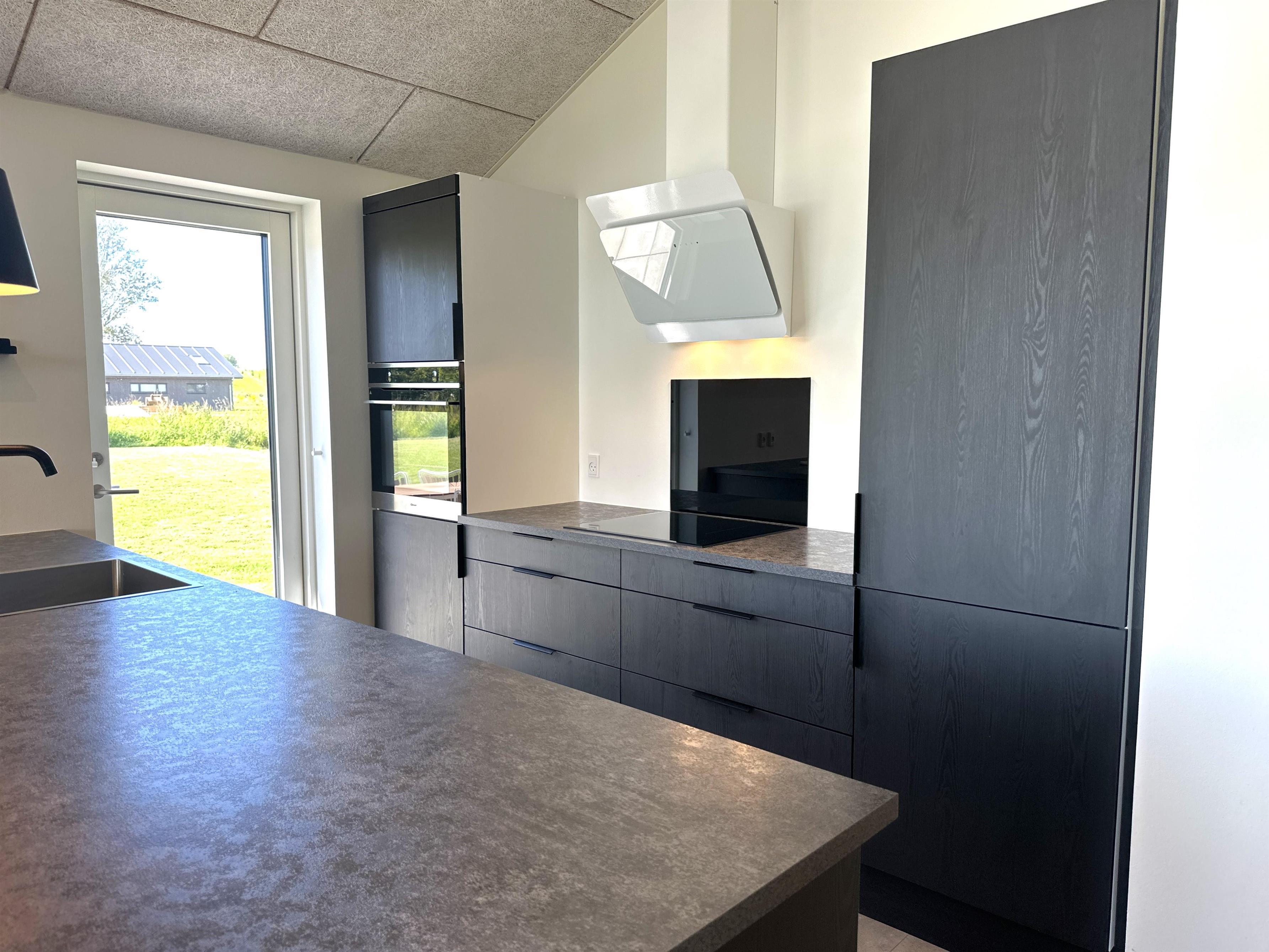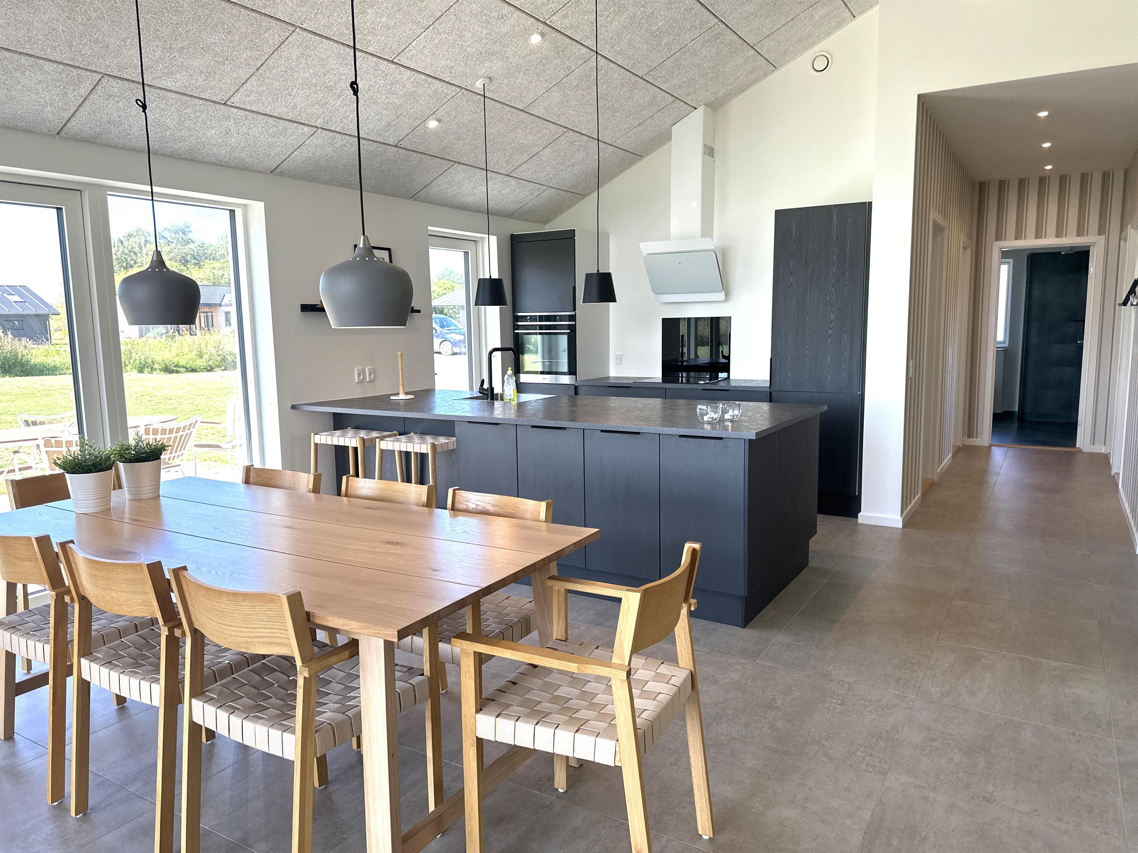 Den stilfulde indretning byder på et lækkert køkken-alrum, hvor du kan lave fælles madlavning, nyde hyggelige måltider og spille brætspil efter en dag med oplevelser.
