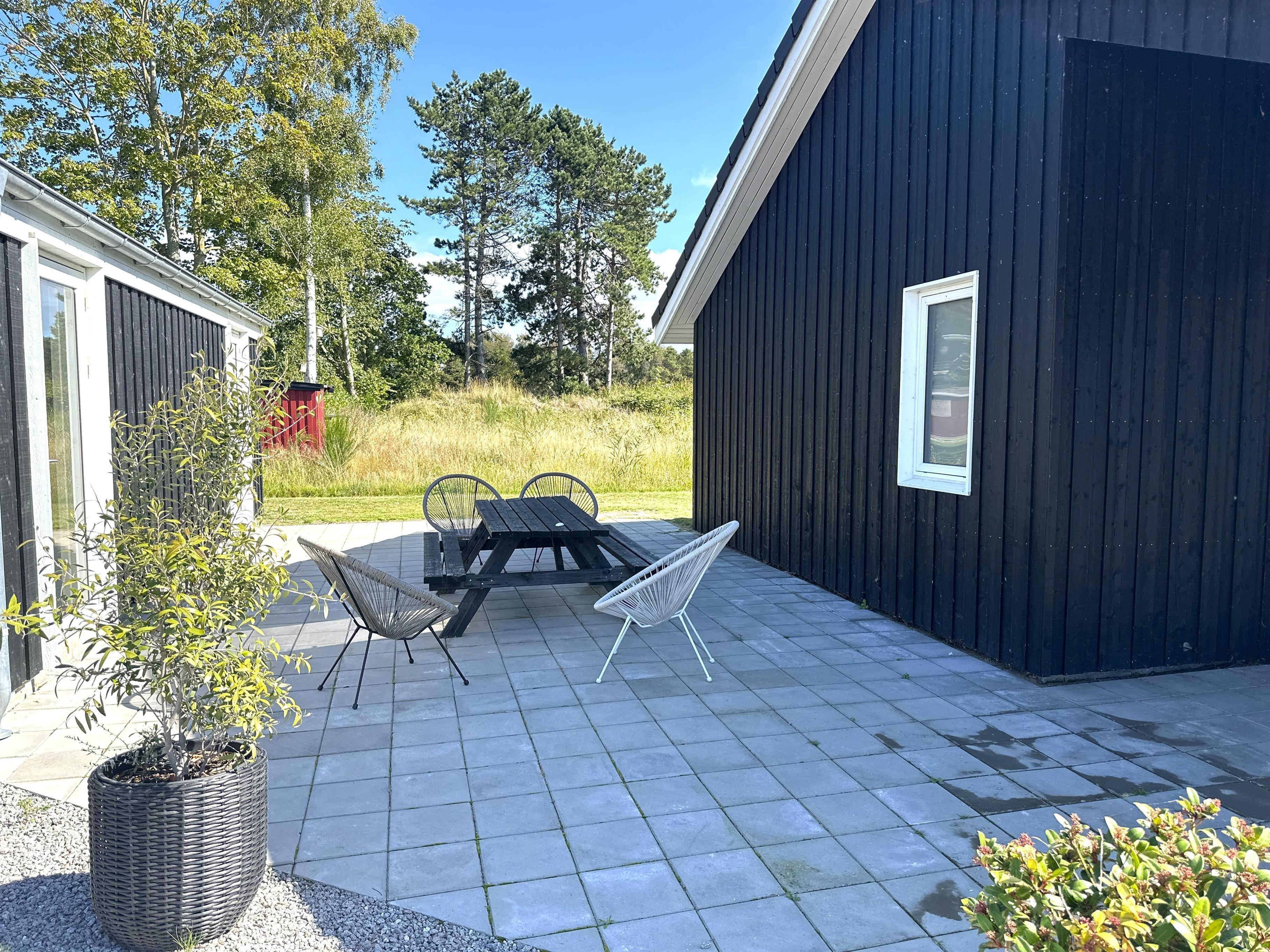 Udenfor kan du nyde sommerdagene på den solrige terrasse, hvor du kan slappe af med en kop kaffe om morgenen eller et glas vin om aftenen.