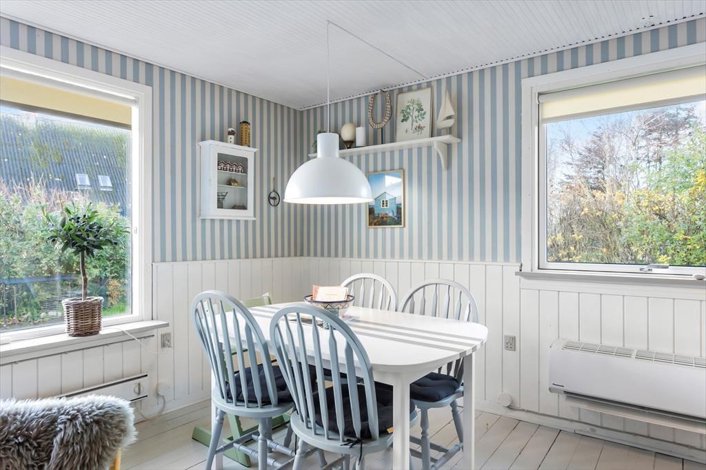 Småt og godt, og en hyggelig atmosfære er ikke til at tage fejl af i dette lille hyggelige træsommerhus, hvor hver en kvadratmeter er indrettet med hjertet. Husets originale køkken har fået nyt liv, og ligger i forlængelse med en lys stue hvor der både er spise- og opholdsafdeling samt direkte udgang til træterrasse og have. Huset rummer desuden to sovekamre, tremmeseng og bad med brus. Der er tv og internet hvor båndbredden er god nok til streaming som sammen med husets mange brætspil kan underholde til aften timerne. Der er 10 minutters gang til vand på begge sider af øen, stranden ved marinaen er særdeles børnevenlig.