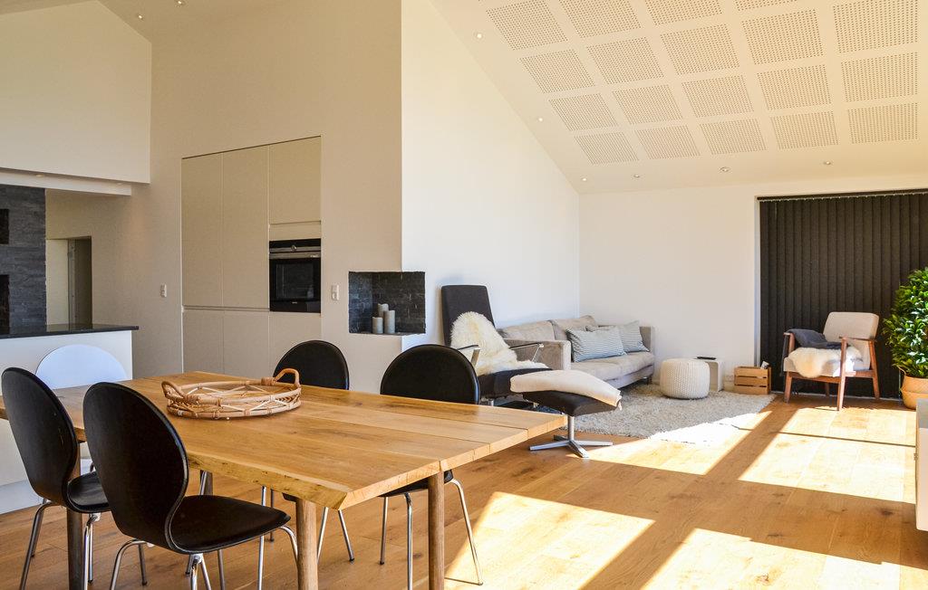 Huset består af 2 soveværelser og 1 badeværelse. Glæd jer til at slappe af i den store, lyse opholdsstue med højt til loftet og udsigt til havet. Her finder I også spisestuen som ligger i forlængelse af det åbne køkken. Alle rum er lyse og indrettet i en moderne og funktionel stil, samtidig med at hyggen er i top.